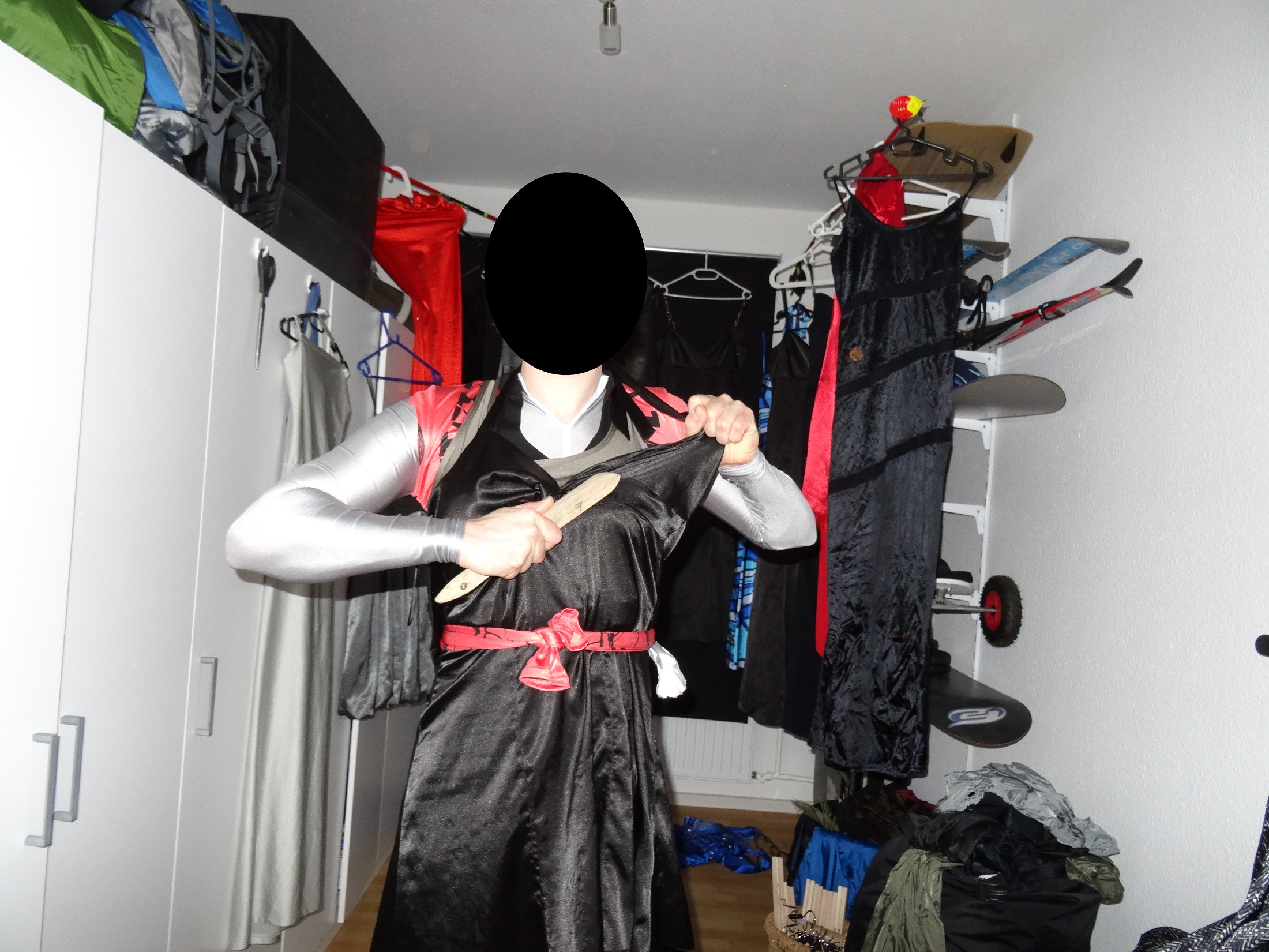 Nee dann nimm am besten von dem dritten Bild die schwarze Hose ganz hinten die zwischen der Tür und dem Schrank hängt.