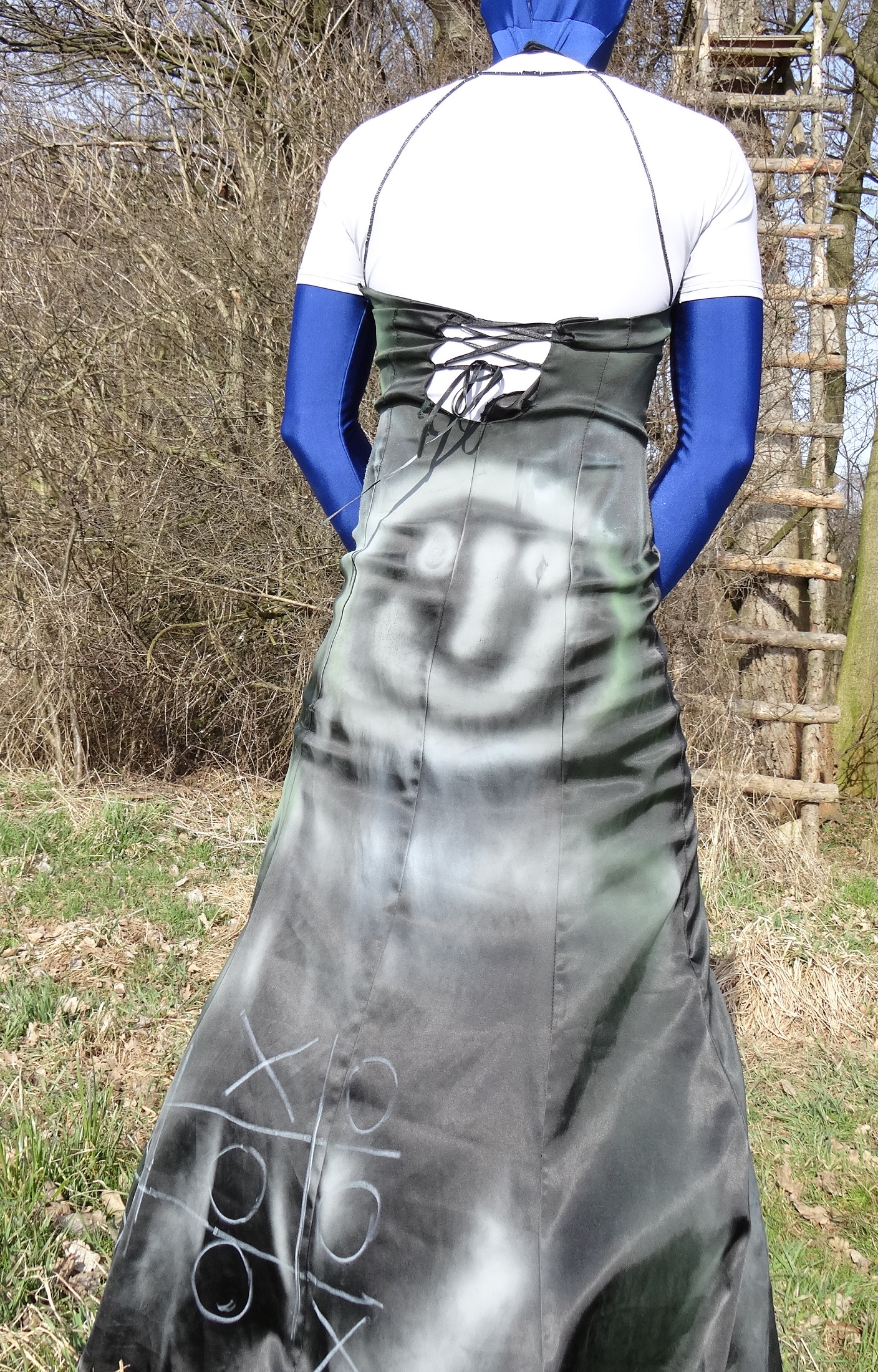 übrigens das wunderschöne bemalte Kleid vom Outfit 1 wird genau so enden wie die Lumpen in dem Video. entweder das Kleid nimmt jemand mit oder es landet im Mülleimer des Stadtparks.