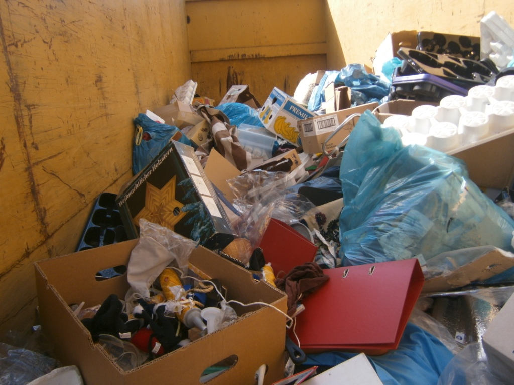 Mülltonnen und -container, Müllschlucker, Sperrmüll, Müllabfuhr, Müllpressen, Müllkippen, Müllverbrennung, Altkleidersammlung und Verschrottung.