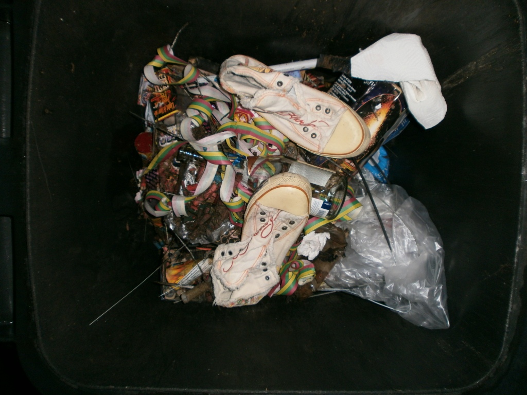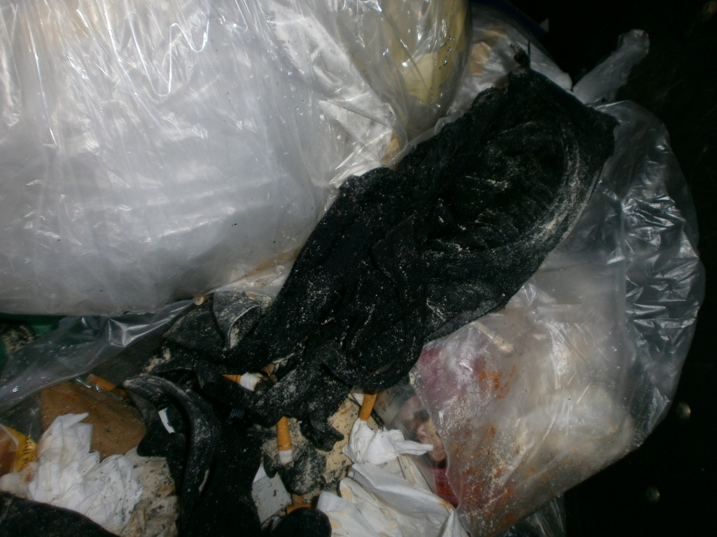 Das war in die Mülltüte gestopft worden: Alles stinkende fertige Latschen.