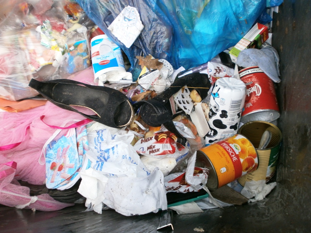 Kaum im Müllcontainer gelandet und schon liegt der erste Dreck drauf. Es gibt keine Gnade, - auch diesmal nicht!