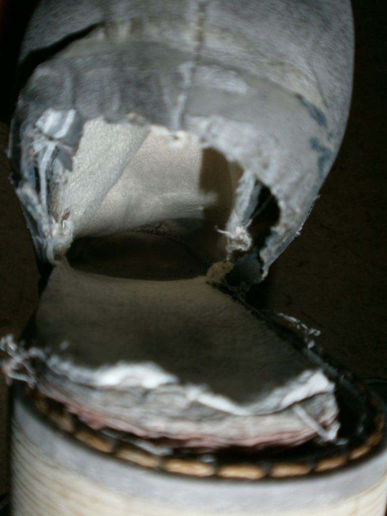 - Oben am Schaft total zerfressen, aber ansonsten kaum getragen. Der arme blöde Hund dürfte wohl Dresche gekriegt haben!