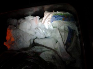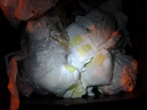 Falls jemand welche von diesen Windeln haben möchte: leider zu spät, heute morgen sind alle von der gefräßigen Müllpresse verschlungen worden