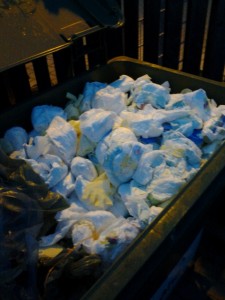 So sieht es im Moment noch in der Mülltonne einer Krippe aus... bis in wenigen Stunden die Müllmänner vorbeikommen und alles rigoros in die Müllpresse schicken: