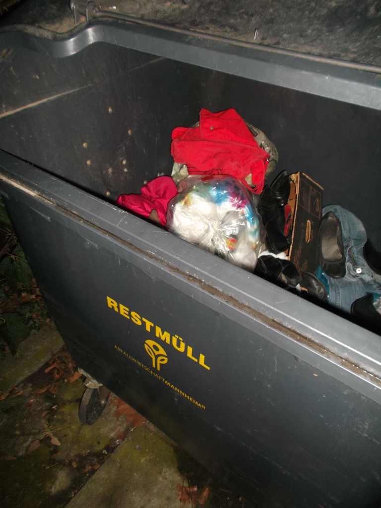 U. a. habe ich es mir auch nicht nehmen lassen mal dort Müllcontainer zu scannen und da dieser Zufallsfund.Ich glaube, ich kenne nun die Adresse von "Engelchen"