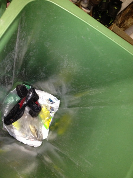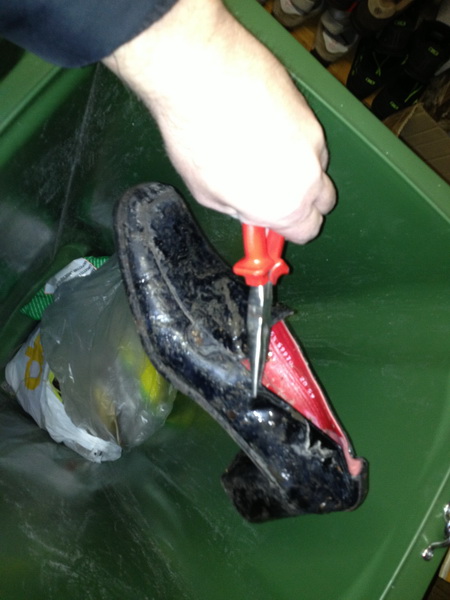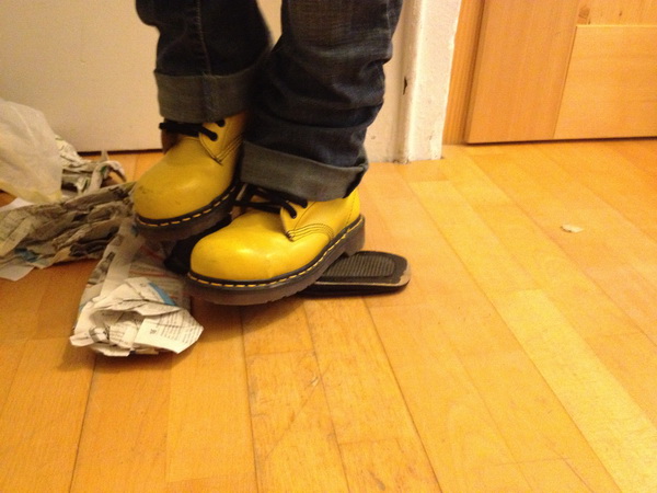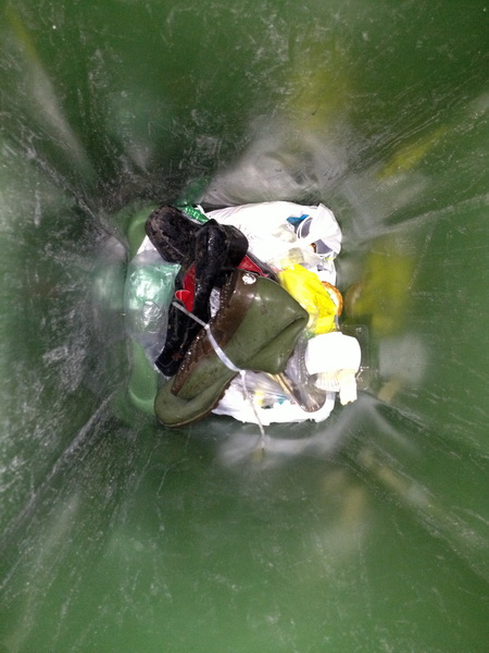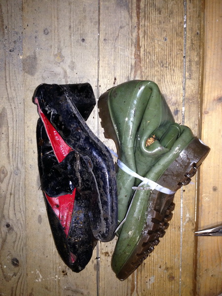 Da liegen nun Stiefel und Sneakers drin ... vom geilsten. Dazu der Kippendreck von mindestens drei Raucherkneipen.