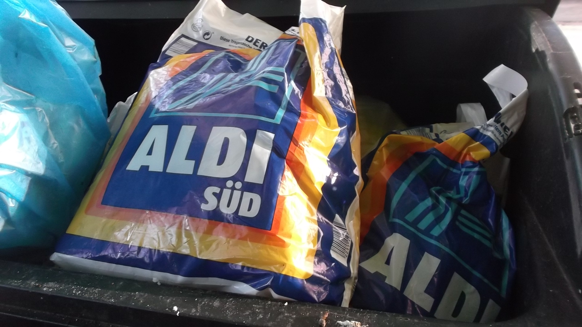 Ich liebe es Plastiktüten, besonders Aldi-Plastiktüten in Müllcontainern zu sehen...wenn man weiss das diese im Müllofen verbrannt werden.......