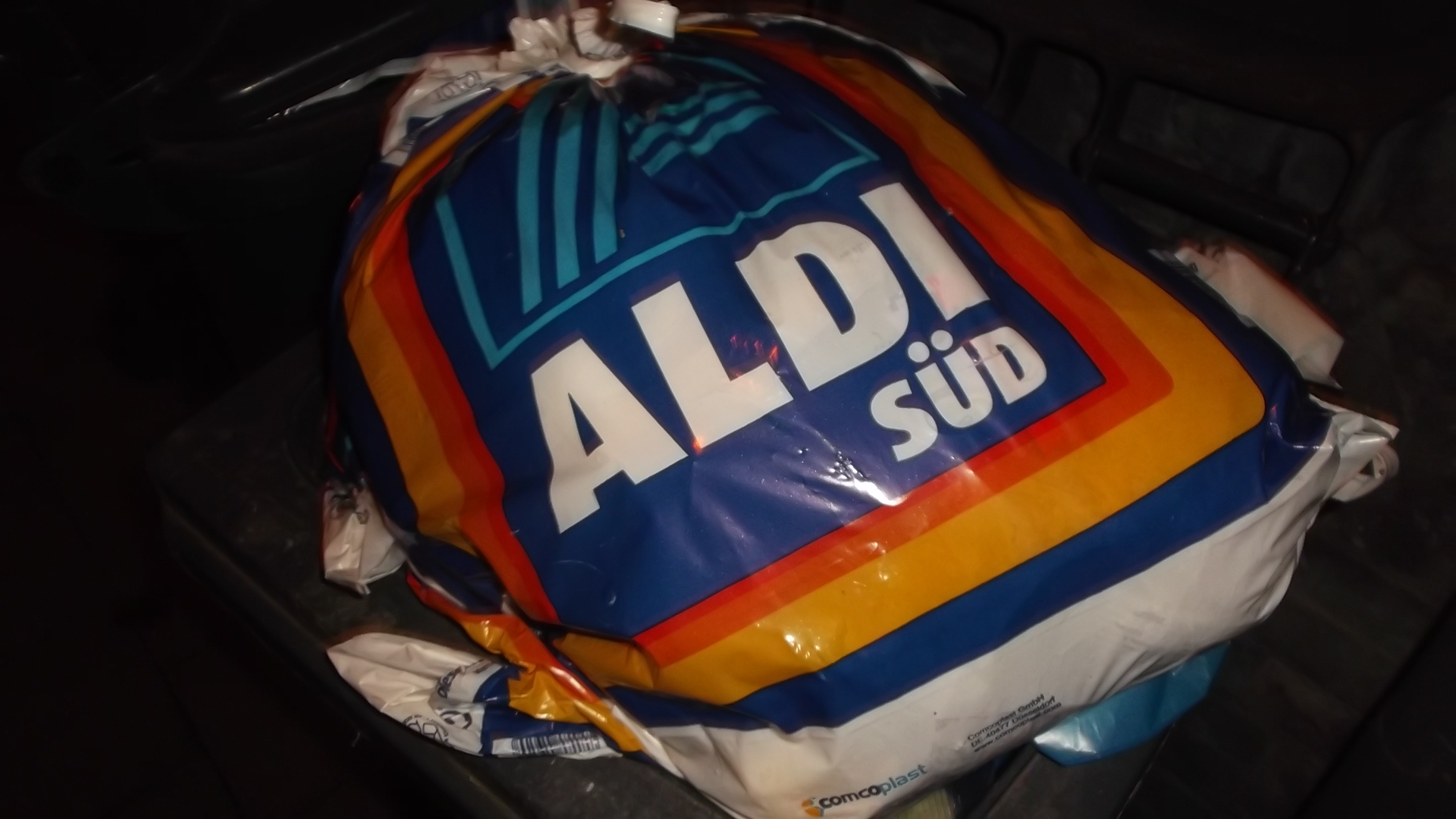 Aldi-Plastiktüten auf dem Weg in die Müllverbrennung....da die Bilder schon 3 Wochen alt sind, sind diese Tüten mittlerweile längst vernichtet
