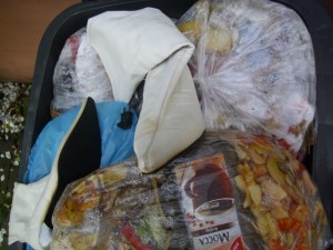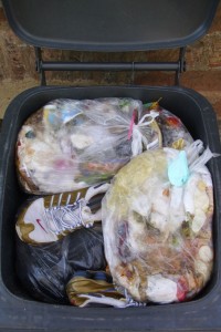 Aber das ist dann eh egal, weil in wenigen Tagen die Müllabfuhr den stinkenden Dreck abholt und vielleicht schon wieder ausrangierte Stiefel, oder große alte Turnschuhe noch bis zur Müllabfuhr weggeworfen werden sollen. Dann sind alle froh, noch ein bisschen Platz in der Mülltonne bis zum Abfuhrtermin zu haben. Wenn die Mülltonne dann an der Straße steht, lässt sich der Tonnendeckel oft doch nicht mehr schließen.