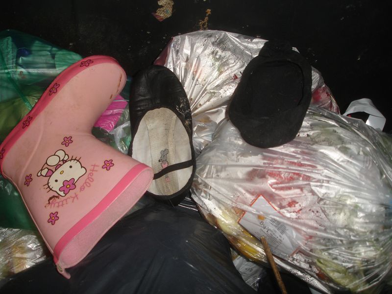 dann wieder ab durch die Tonnen ... und siehe da... schon wieder Schuhe. Diesmal Gummistiefel.