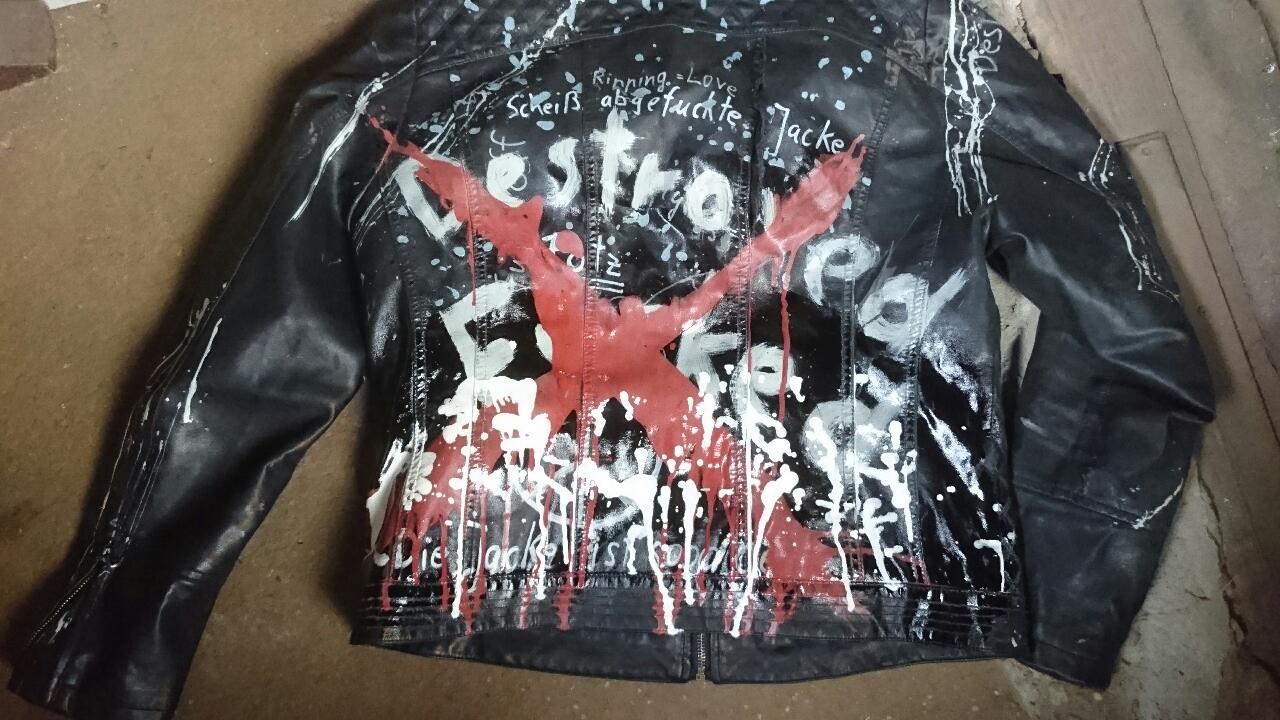 Ob die Lederjacke noch mehr Farbe auf Ihr verträgt die an ihr herunter läuft?