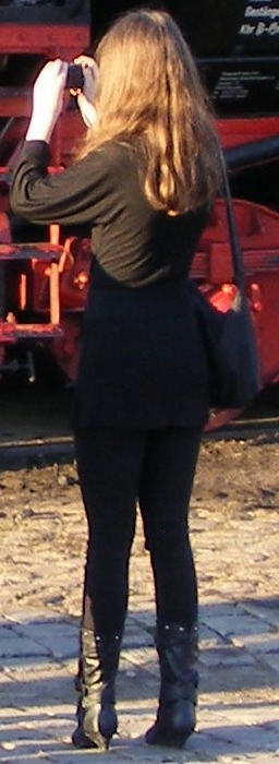 Nachdem Katrin mit dem Heizer noch über den Brennwert von Lederstiefeln im Vergleich zur Stein- oder Braunkohle philosophiert hatte, war es Zeit zum Zug zu gehen, wo Katrins Mann bereits auf die Frauen wartete. Höchst erfreut beobachte Katrin, dass ausgerechnet die Lok angekuppelt wurde, die eben noch die alten Stiefel und Ihre schöne Jeans gefressen hatte. Als die Dampflok schnaufend den Zug bergauf zog, wurde ihr wieder einmal klar, dass in alten Stiefeln und Jeans nicht nur ein enormer Heizwert, sondern auch viel Kraft steckt. Insgeheim überlegte sie auch, ob sich das nochmal wiederholen lässt. Dann würden aber auf jeden Fall auch richtige Lederstiefel dran glauben müssen. Die Overknees an Ihren Füßen hatten diesmal noch Glück gehabt. Würden sie aber bis zum nächsten Mal noch überleben. :twisted: