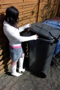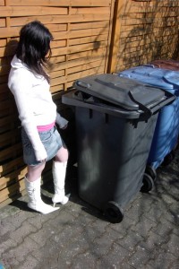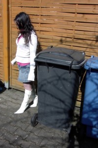 Wenn auch die gerade weggeworfenen Stiefel immer noch ein wenig aus der Mülltonne lugten, meinte das Mädel, dass so die Müllmänner sich wohl nicht beschweren könnten.