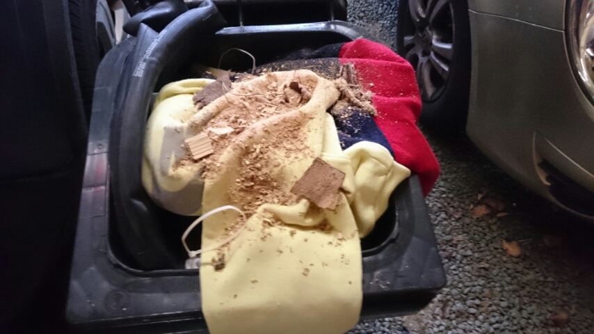 Mit einem traurigen Blick schauten mich mein gelber Nike und darunter meine Collegejacke an. Es lag etwas Unrat auf ihnen, sah aus wie Holzspäne etwas Laub und Staub, aber egal , ich riss sie heraus ……… gerettet!!!!