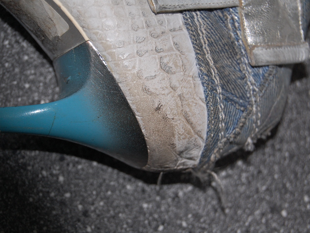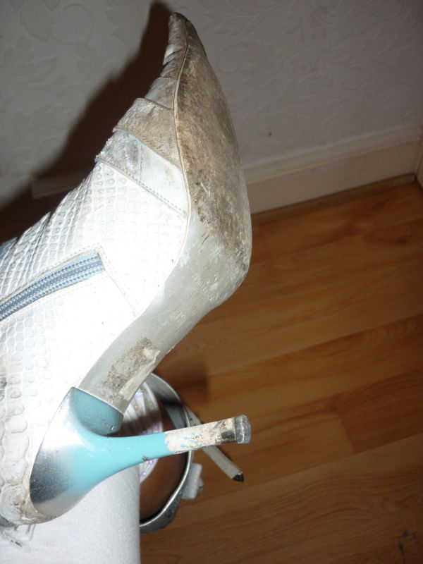 So wechselten diese Designerstiefel für 85,00 Pfund die Besitzerin, die ziemlich happy über diesen gelungen Deal war. Die Stiefel wurden regelmäßig ausgeführt. Durch die Beanspruchung war dann ein Austausch der Absatzplättchen erforderlich, der fachmännisch ausgeführt wurde. Dann, nach einem dreiviertel Jahr erlitt die Frau einen Freizeitunfall, der es ihr von da ab nicht mehr ermöglichte, High Heels zu tragen. Dieser Umstand mag für manche Frau einer Tragödie gleichkommen, aber in diesem Fall wurde die Situation mit Fassung getragen. Die High Heels wurden aussortiert und für den Altkleiderkontainer eingetütet. Durch ein Gespräch bei der Arbeit interessierte sich eine Arbeitskollegin für die Schuhe. Diese Kollegin verfügte als alleinerziehende Mutter von drei Kindern über kein allzu großes Einkommen. Am nächsten Tag bekam die Kollegin die Tragetasche mit den aussortierten Stöckelschuhen, um sich die besten herauszusuchen und den Rest, der keine Verwendung findet, im Altkleiderkontainer zu entsorgen.