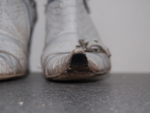 Ein flaches Paar, stylingkonform in spitzer Ausführung, hat mich die ersten Semester immer dann zur Uni begleitet, wenn die Pfennigabsätze zur Qual wurden. Ab und zu muss man seinen Füßen auch mal etwas Bequemes gönnen. Weil bequem doch öfter getragen, so dass die Absätze gut platt gewalzt wurden und als dann auch noch die Spitzen hinüber waren wurde dieses Paar geschont und erst einmal vergessen.