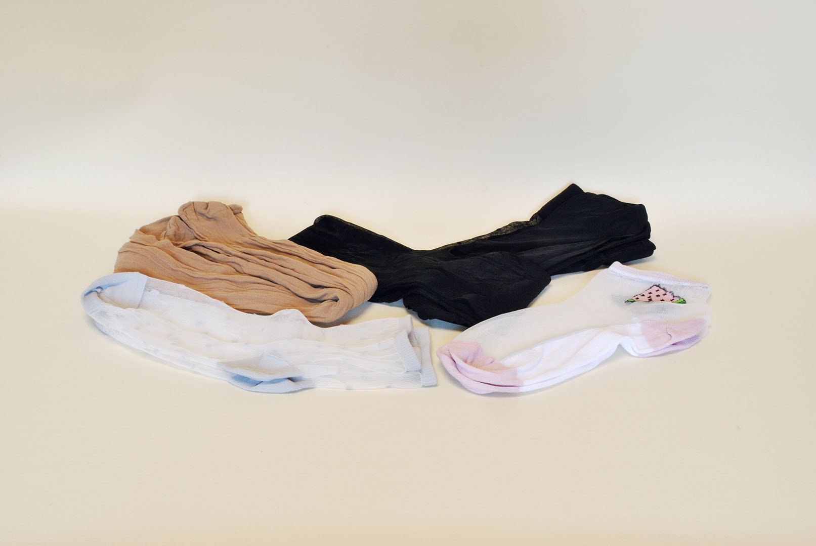Im Büro-Mülleimer eines Fotostudios warteten diverse Strumpfhosen und ein Paar Karnevalskniestrümpfe darauf vernichtet zu werden. Alles neu und ungetragen, und damit viel zu schade für die Müllverbrennungsanlage.