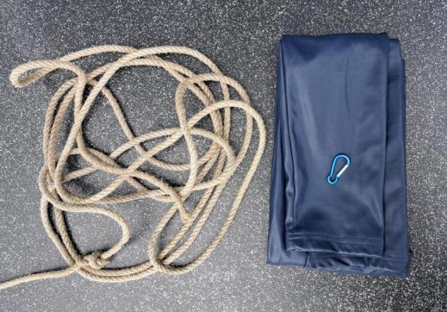 Und hast du einen Karabinerhaken und eine Kette oder etwas Seil da?