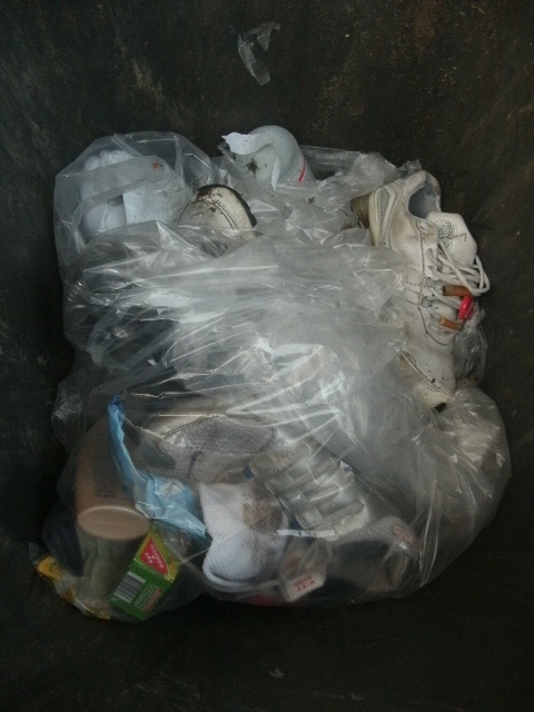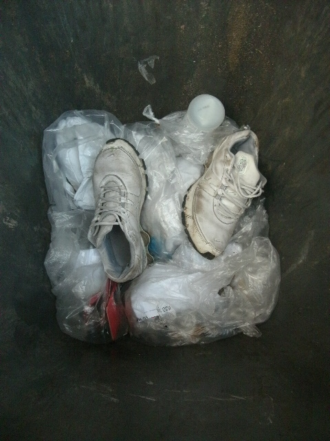 Die Putzfrau meinte noch, ihr Cousin hätte auch seine alten Nikes in die Mülltonne hier geworfen.
