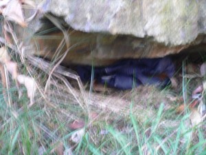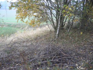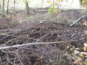 Dort hat auch gleich die schwarze Sporthose ihren Platz bezogen. Die kuschelt nun mit abgesägten Ästen