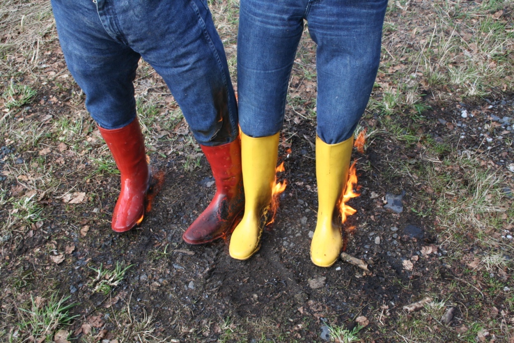 Nochmals einen Tag später begutachteten sie ihr Werk, trugen alles in den Garten und legten Feuer an den Gummistiefel. Hier noch ein paar Bilder dazu.
