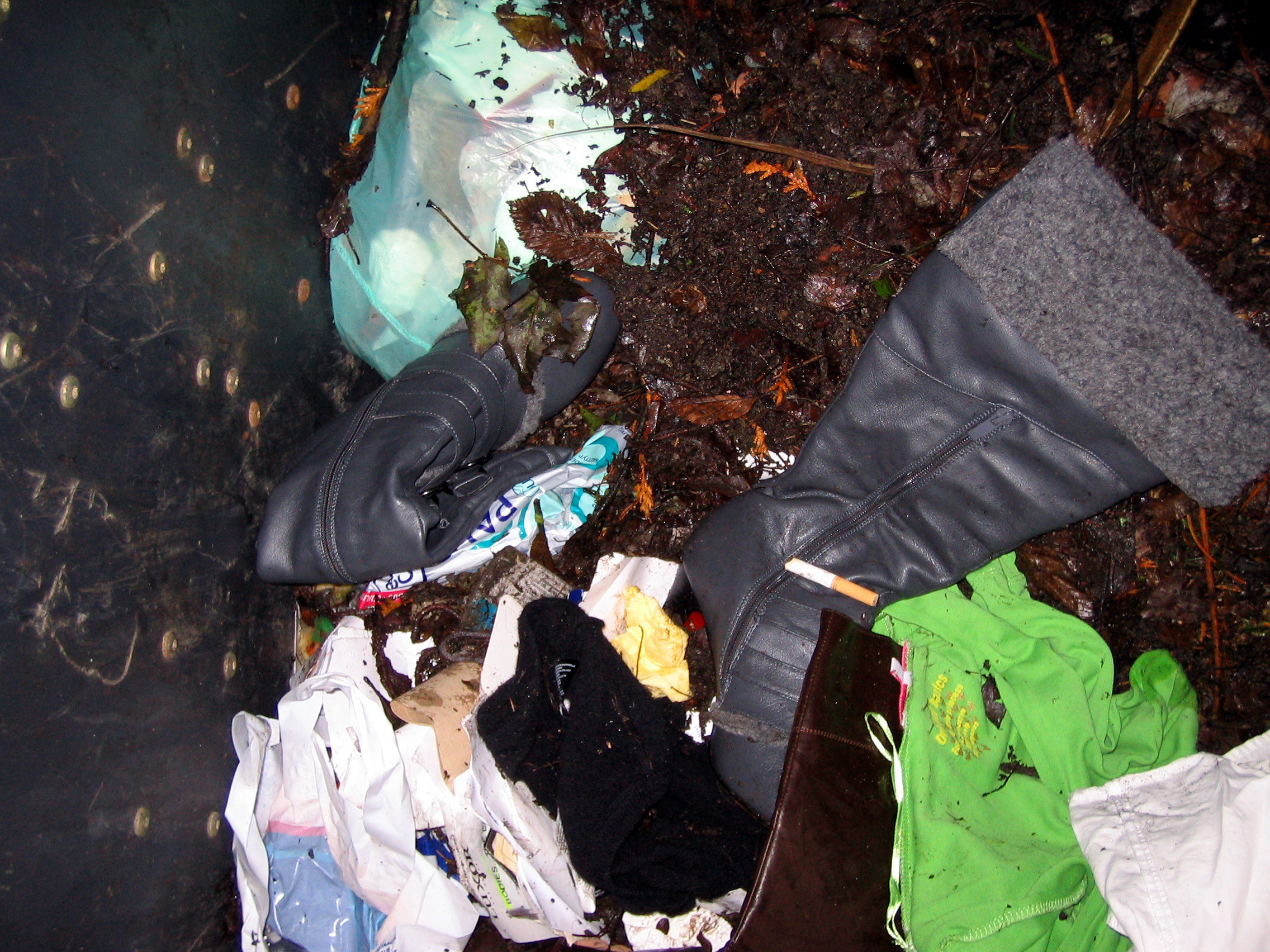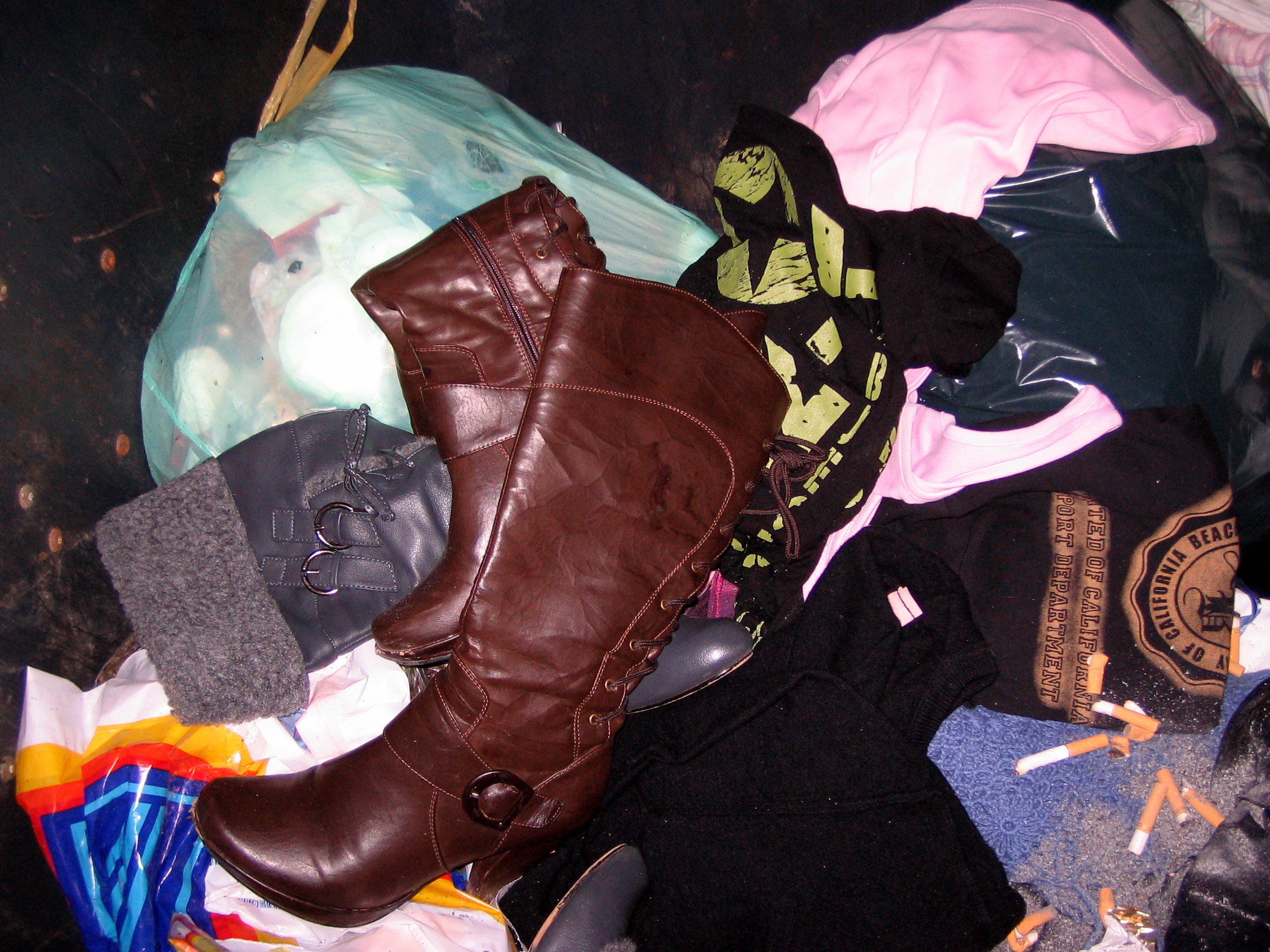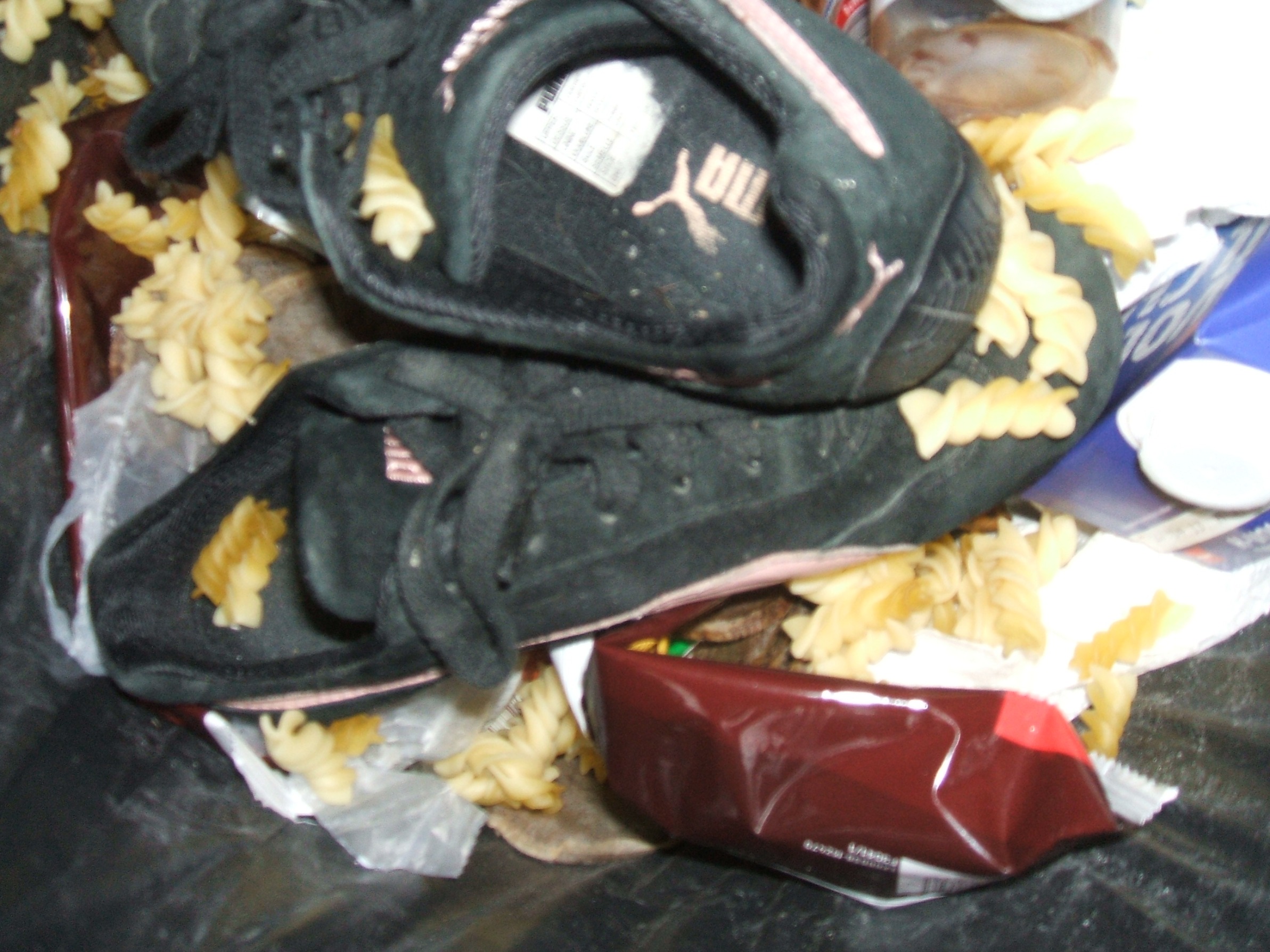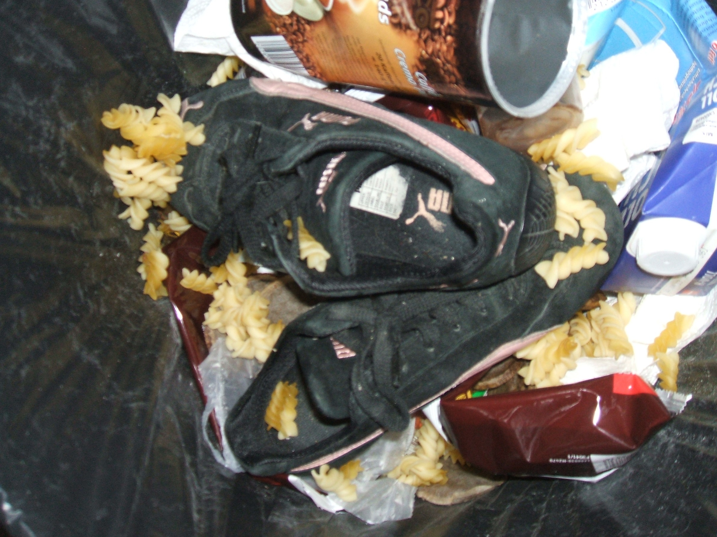 Es kommt auch gelegentlich vor, dass Schuhe "geklaut" werden (wobei man nicht von Diebstahl reden kann, wenn die Schuhe in der Tonne liegen)...