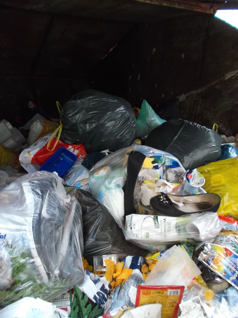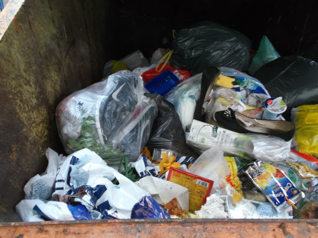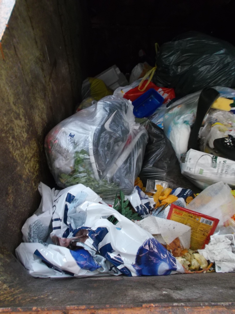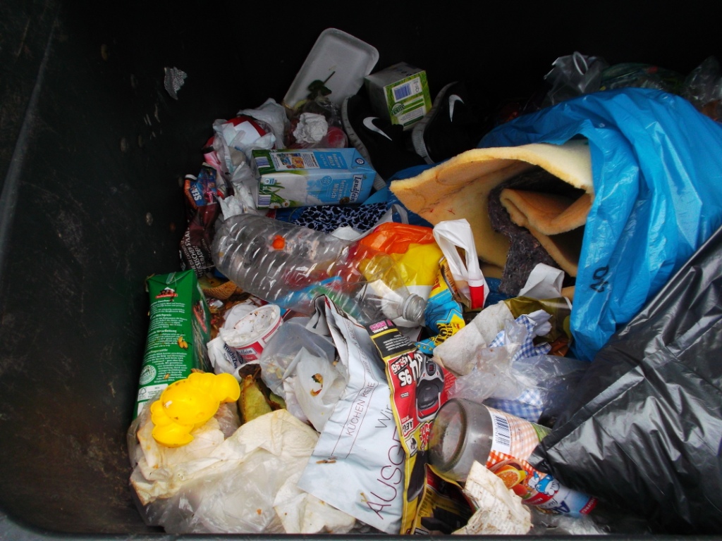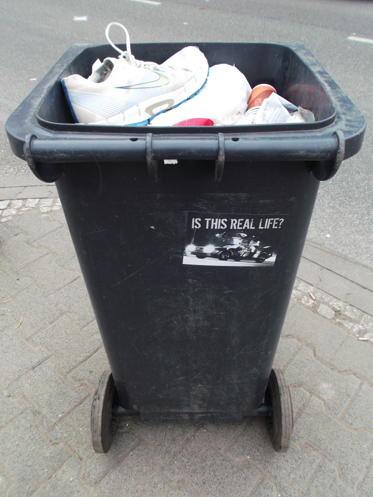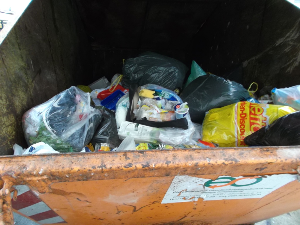 in Frankfurt am Main auf offener Straße stand diese Mülltonne. Mit Fast-Food-Verpackungen oder Zigarettenkippen kann man dort sehr wohl rechnen, aber da war ich dann doch überrascht: