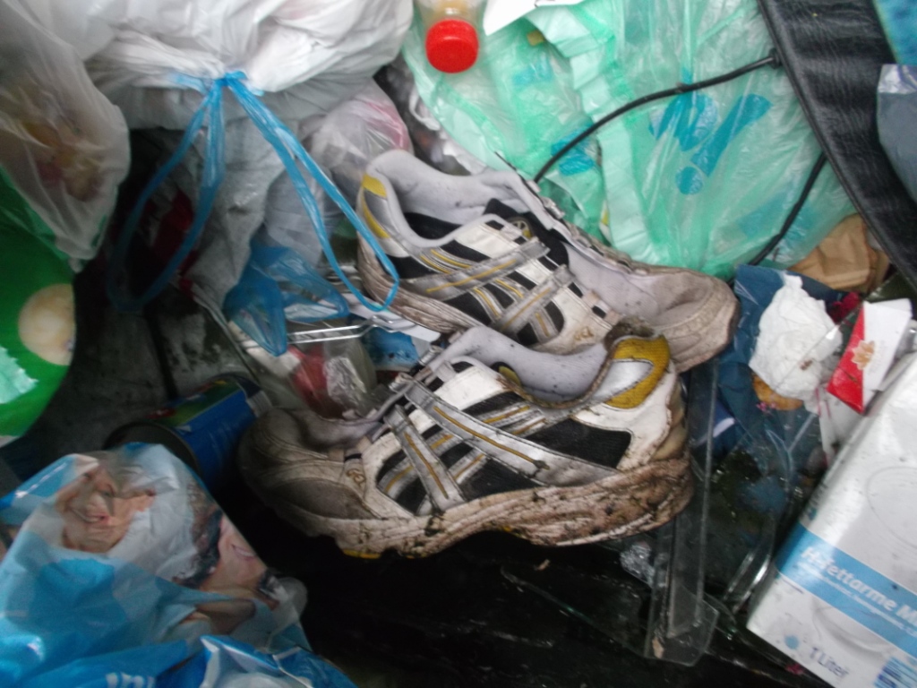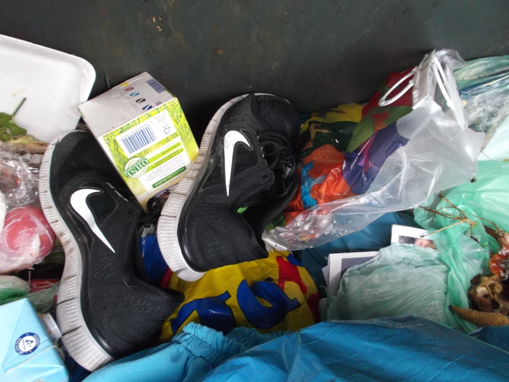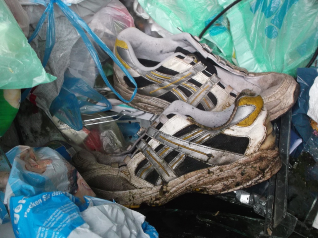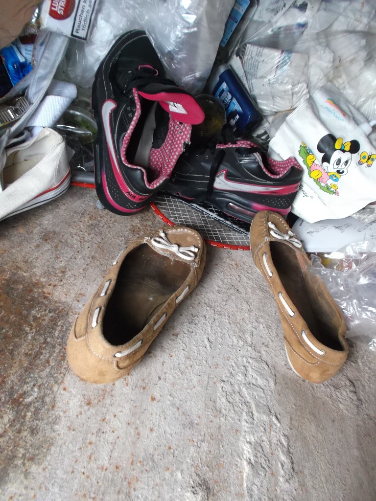in den letzten Wochen habe ich einige Funde gemacht und auch manches fotografiert. Heute will ich mal soweit ich Zeit habe, die Bilderserien posten. Schon immer suche ich nach Großmüllcontainern und einige habe ich immer wieder "auf meinem Radar". So auch dieser: Nur zwei Wochen vorher lagen die Proll-Shox da drin im Dreck und diesmal hätte ich beinahe diese schon sehr tief im Dreck liegende Laufschuhe übersehen. So tief wie die im Müll lagen, wurden die auch böse versaut und haben übelst gestunken: