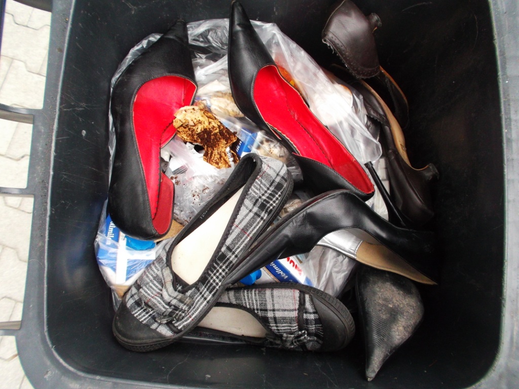 Es macht mich immer wieder an, wenn Frauen ihre geilen Klamotten und Schuhe zum Müll bringen.
