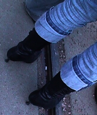 Nun hat meine BF in ihrem "Fotoalbum" eine wahrliche "Modesünde" von mir gefunden. Ich traue mich kaum, es hier zu veröffentlichen: Weil die Stiefelschäfte zu eng waren, hatte ich einfach die Hose darüber aufgeschlagen! Wie so oft bei Hosen "von der Stange" waren mal wieder die Beine zu kurz bzw. meine zu lang ... :lol:
