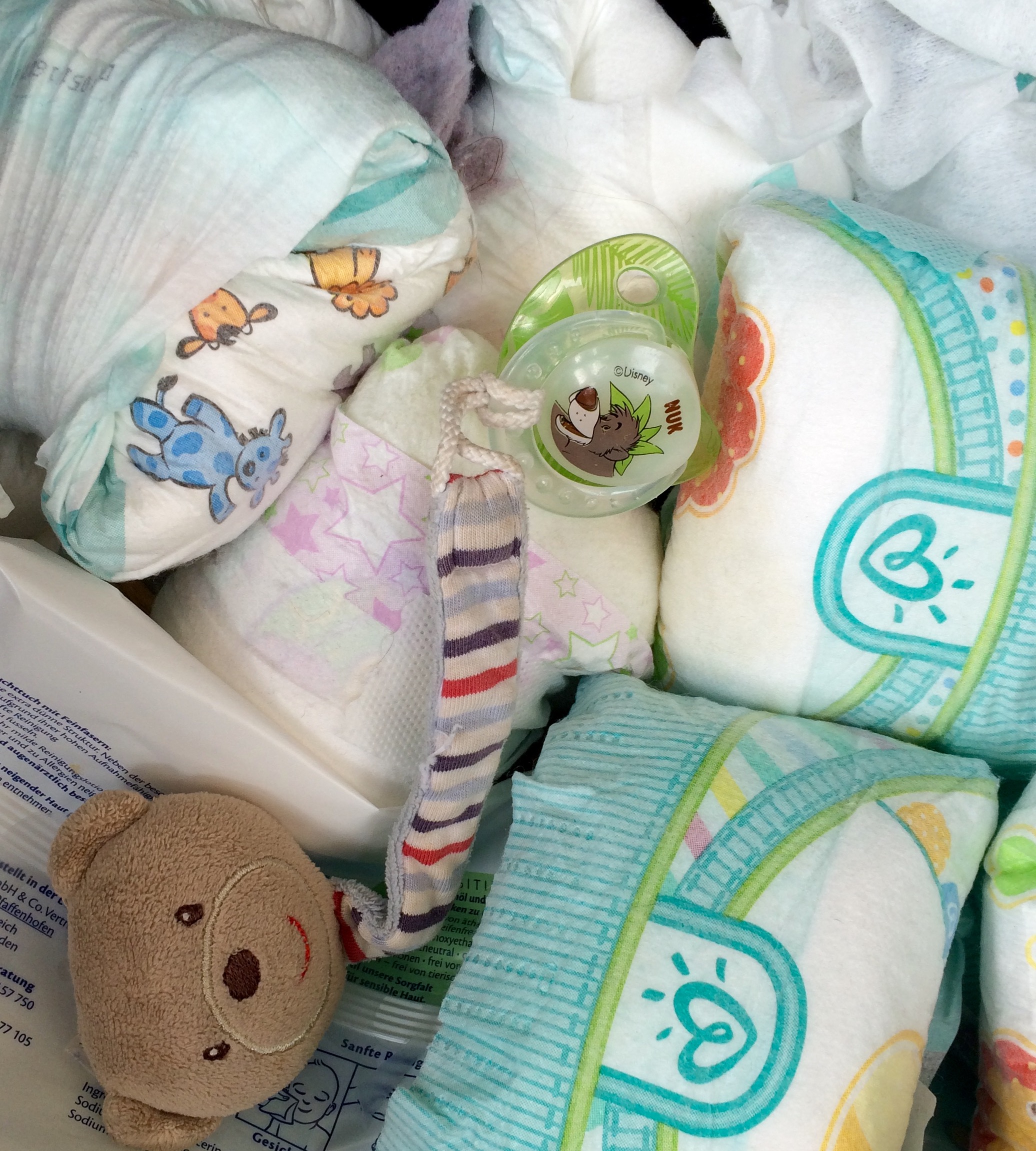 Schade nur das die schönen Schnullis und Windeln im Müllwagen gepresst werden.