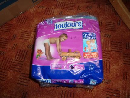 Hier schön zu sehen ist eine vollgesogene babylove der Größe 6. Wie es sich gehört zum bekannten Paket verpackt. Morgen früh wird sie abgeholt. Morgen Mittag wird sie wahrscheinlich schon auf dem Umschlageplatz sein.