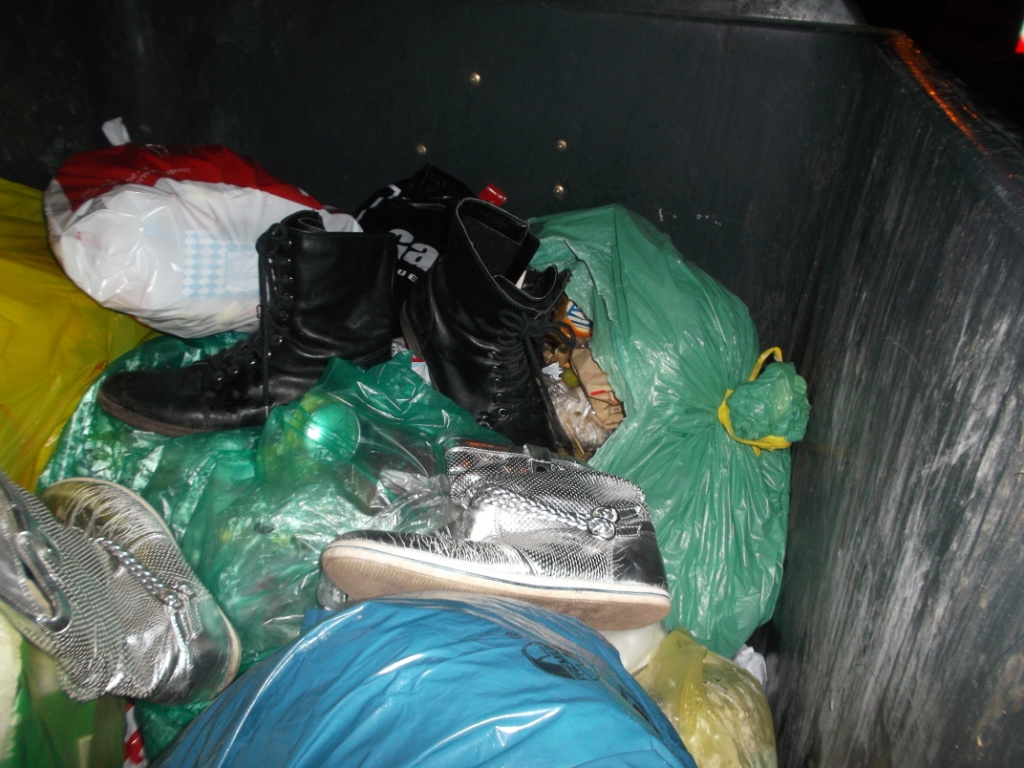 Da hieß es nur noch schnell zugreifen und endlich das gute Dutzend Schuhe aus einer Handvoll Müllcontainer zum Auto bringen, denn die Hände taten schon weh von dem "Müllgewicht"!
