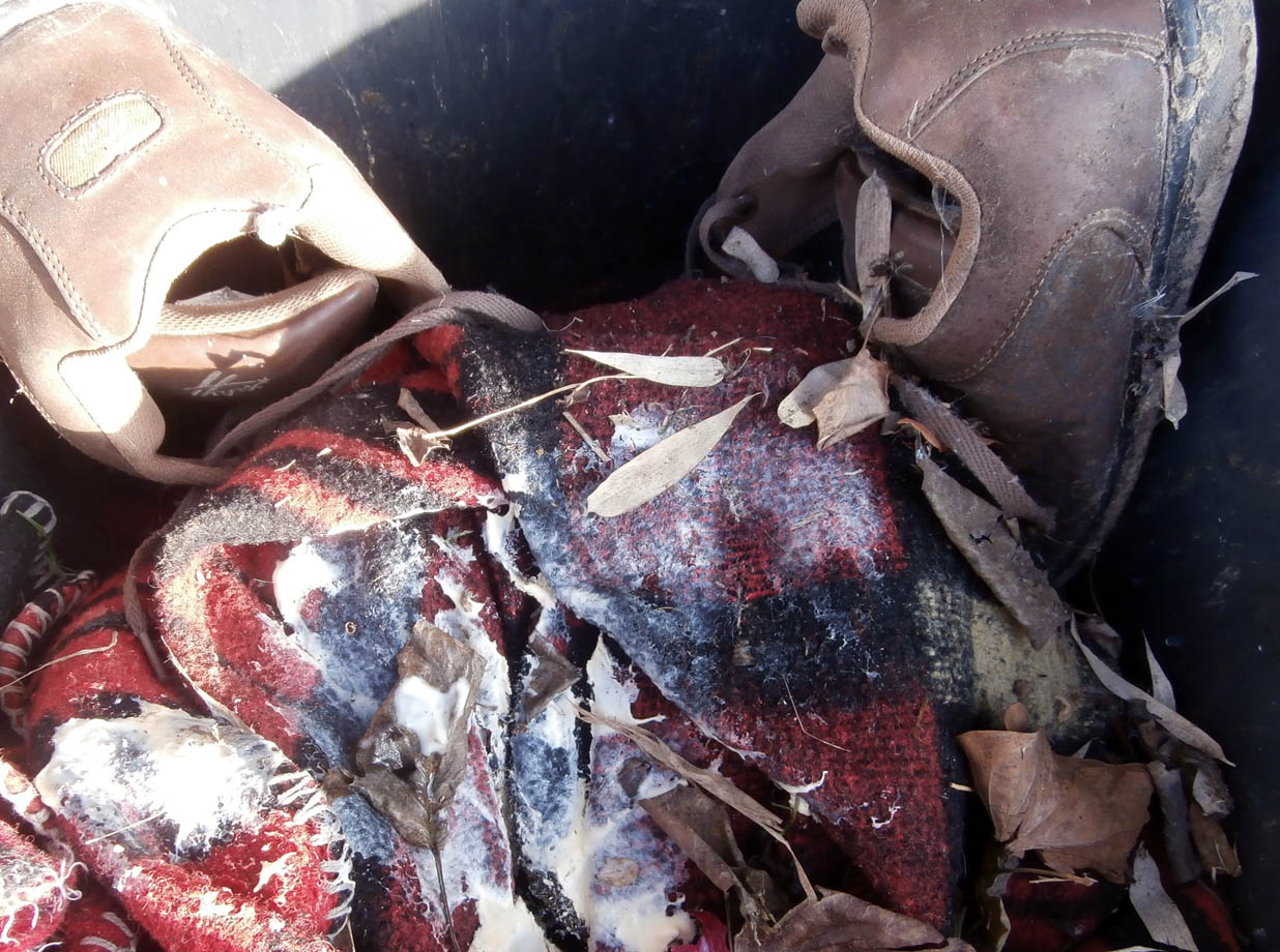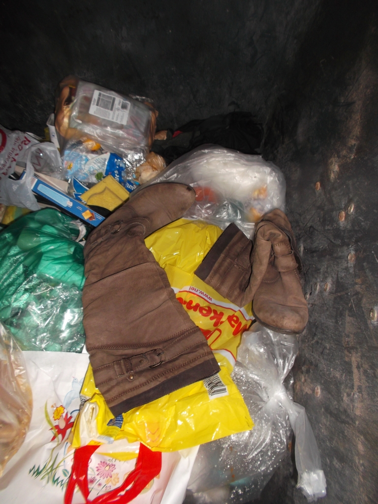 Wo waren die Stiefelchen abgeblieben? Im Müll wühlen brachte keinen Erfolg; auch in den Nachbarcontainern nicht!