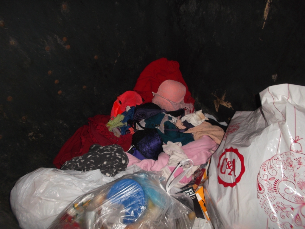 In einem benachbarten Müllcontainer blickte ich auf eine ganze "Landschaft" auf geiler Mädelswäsche, die auf dem siffigen Tonnenboden lag.