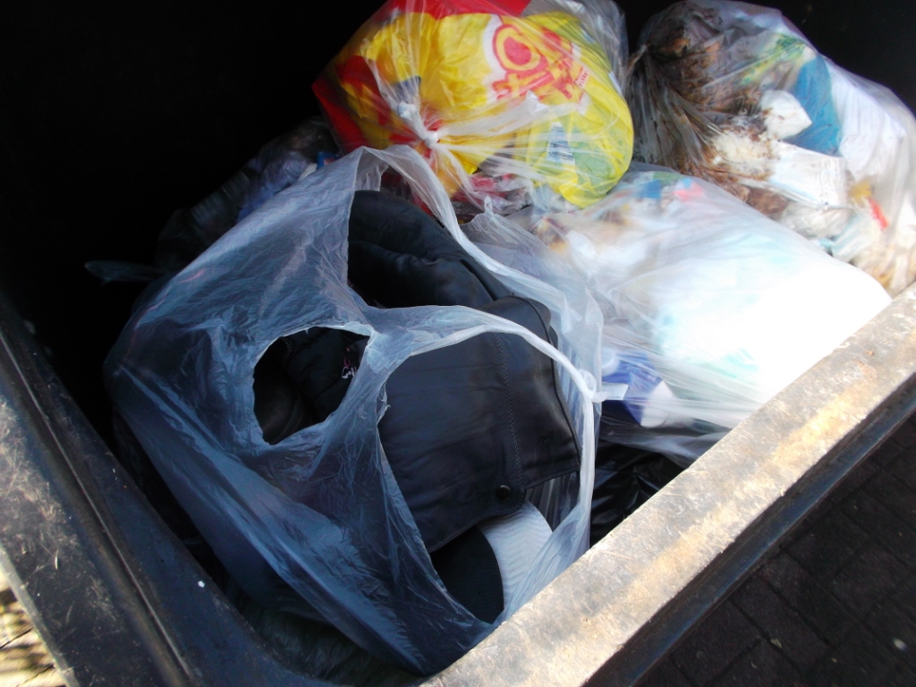 Eine noch nach ihrer Trägerin duftenden Strumpfhose "verloren" in dem vielen, vielen Hausmüll.