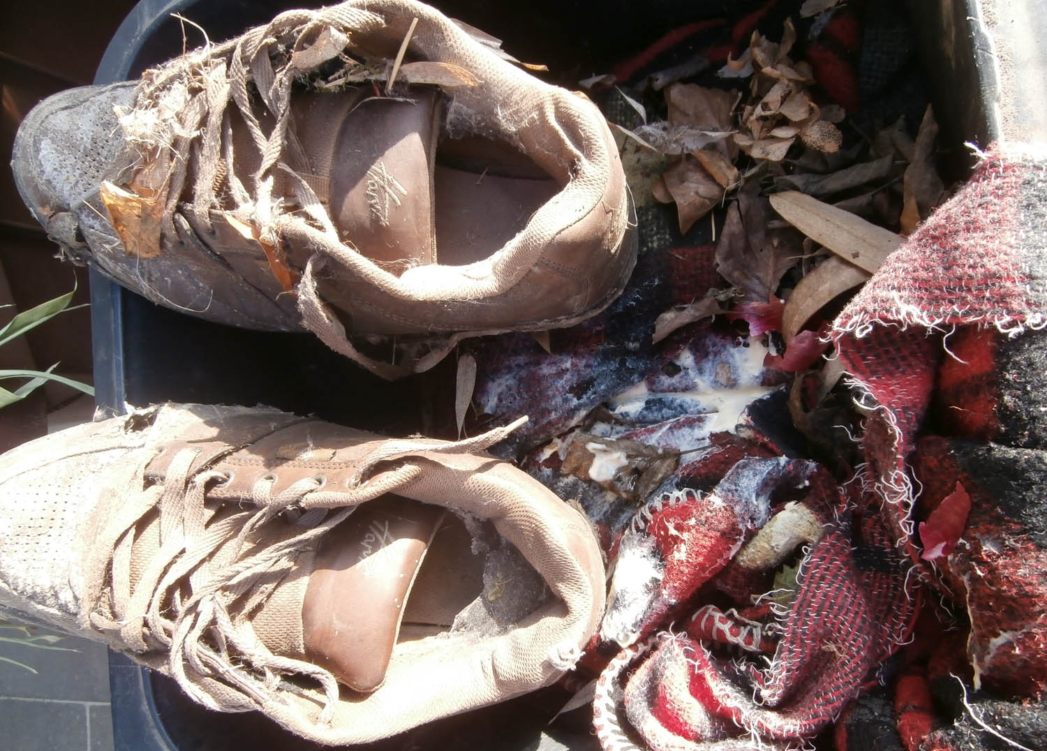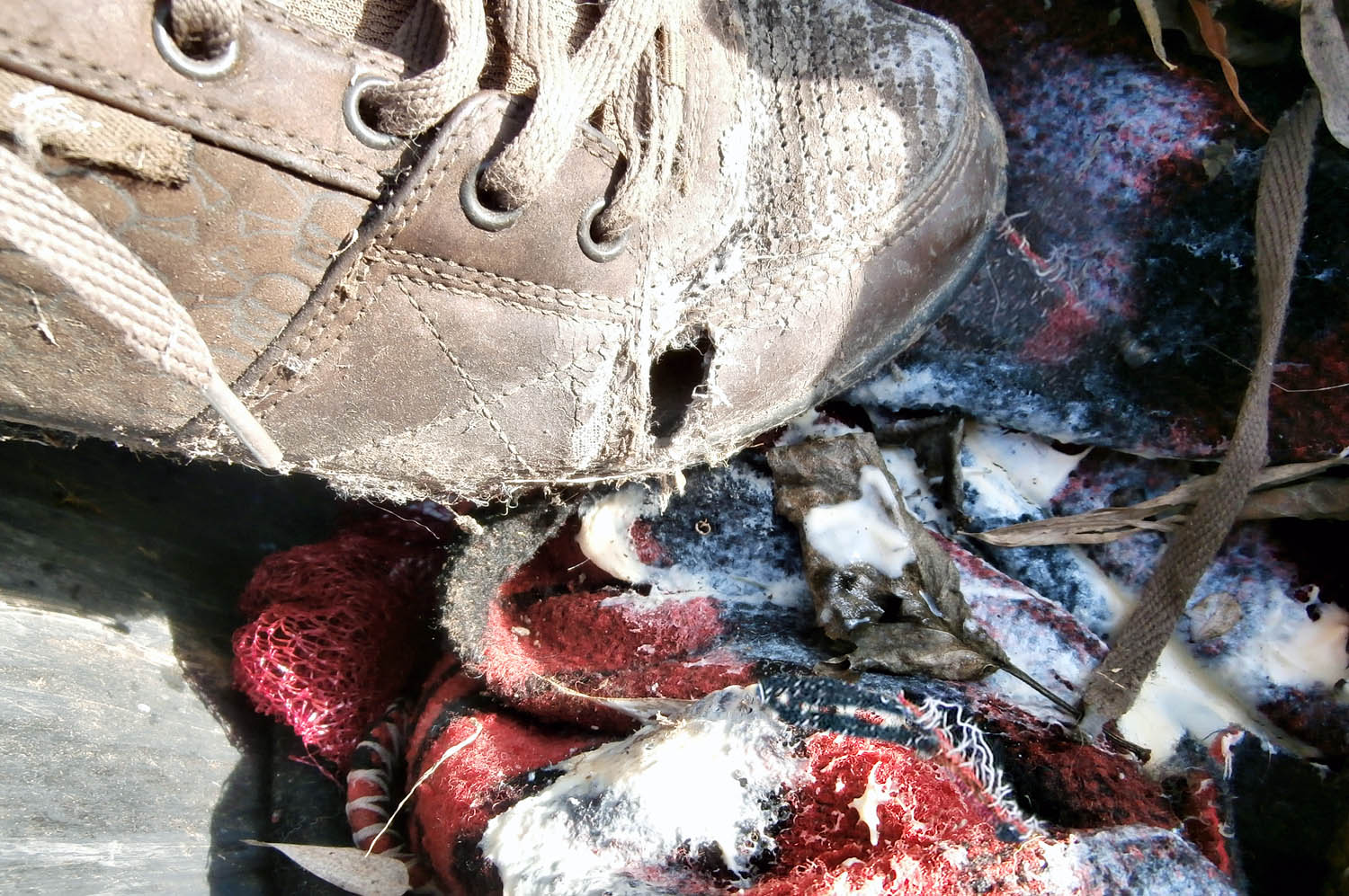 Offensichtlich konnte die Entsorgung dieser ausgelatschten Sneaks nicht mehr warten. Warum?!?