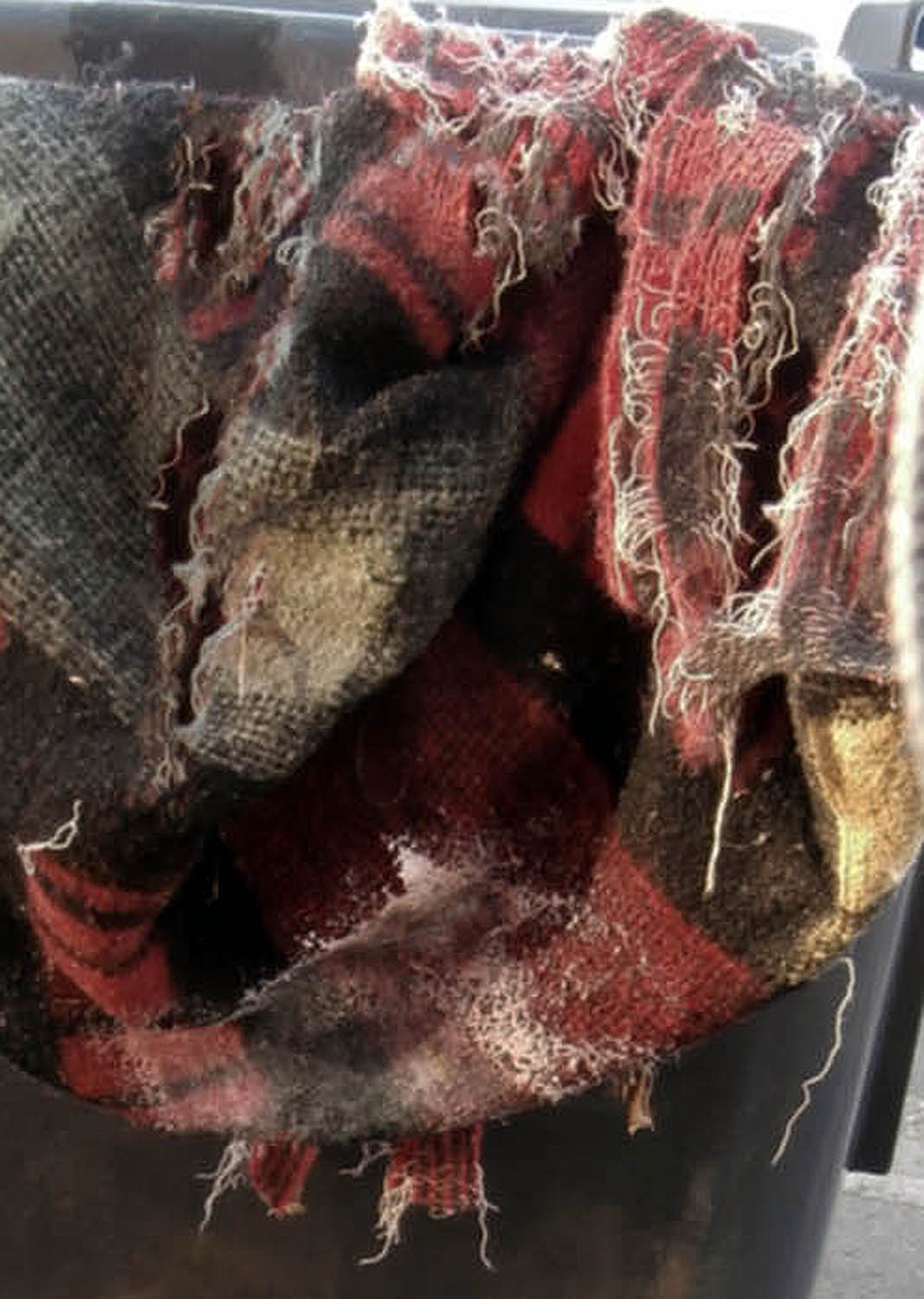 Bei den Wolldeckenfetzen in der Mülltonne steigt die Spannung. Warum meinst du dich "entschuldigen" zu müssen dafür, dass bei euch der Müll schmutzig wird?