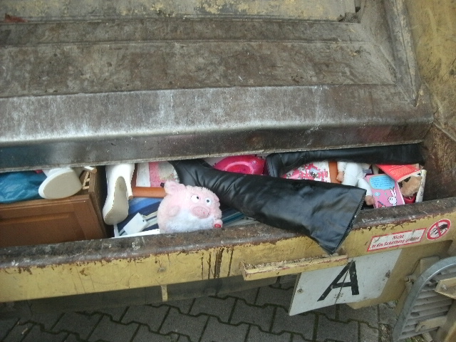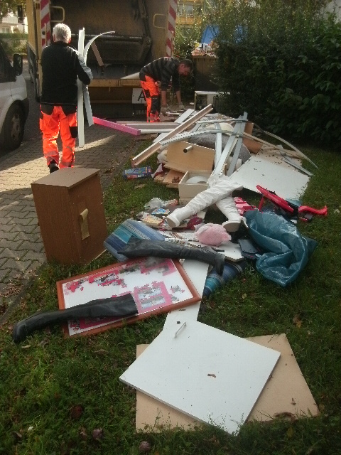 Also habe ich deren Adresse ausbaldowert und den Sperrmülltermin; - und natürlich war ich da und konnte bei dem „Drama“ dabei sein