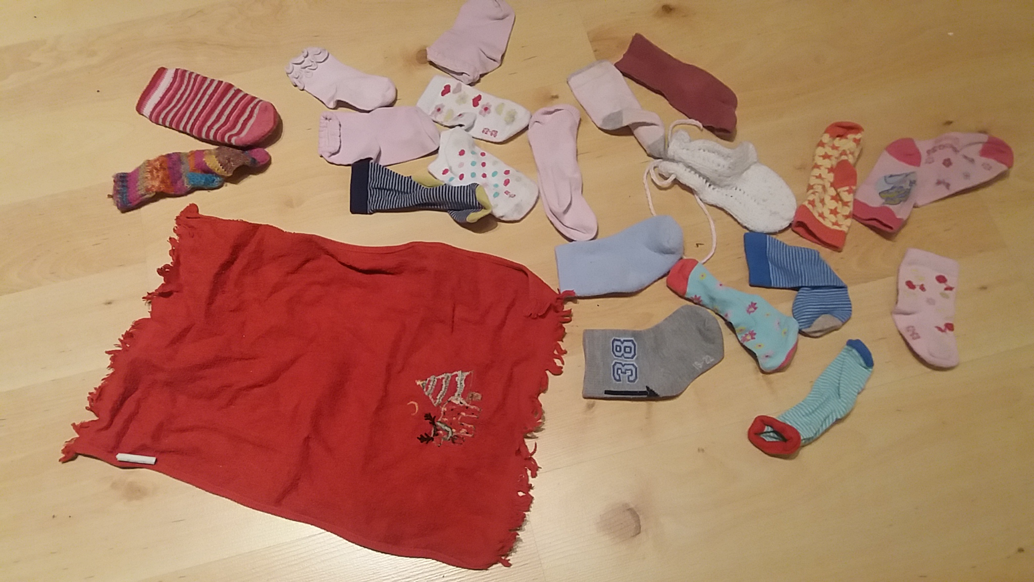 Zwischen jeder Menge voller Pampers lagen diese einzelnen Babysöckchen. Natürlich haben sie schon den typischen Windelgeruch angenommen