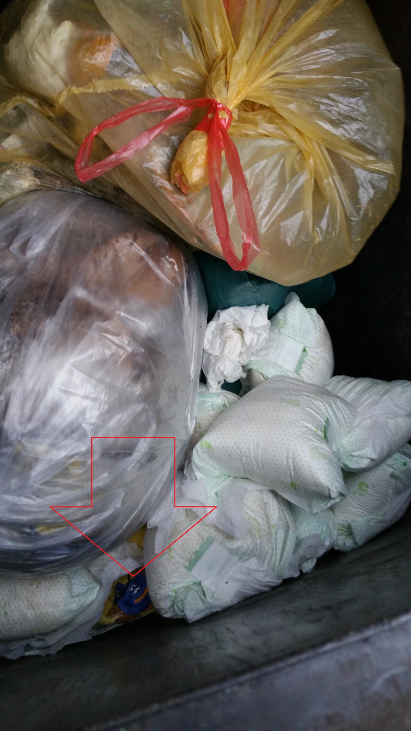 ich find Windeln voll toll also gebrauchte Babywindeln in einer Mülltonne oder in einem Eimer :X