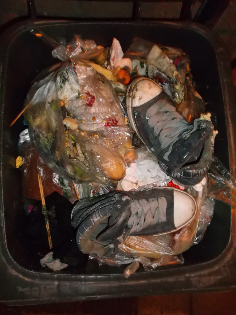 - Endlich: Nach einem Monat lag der Küchenmüllbeutel in unserer Mülltonne!
