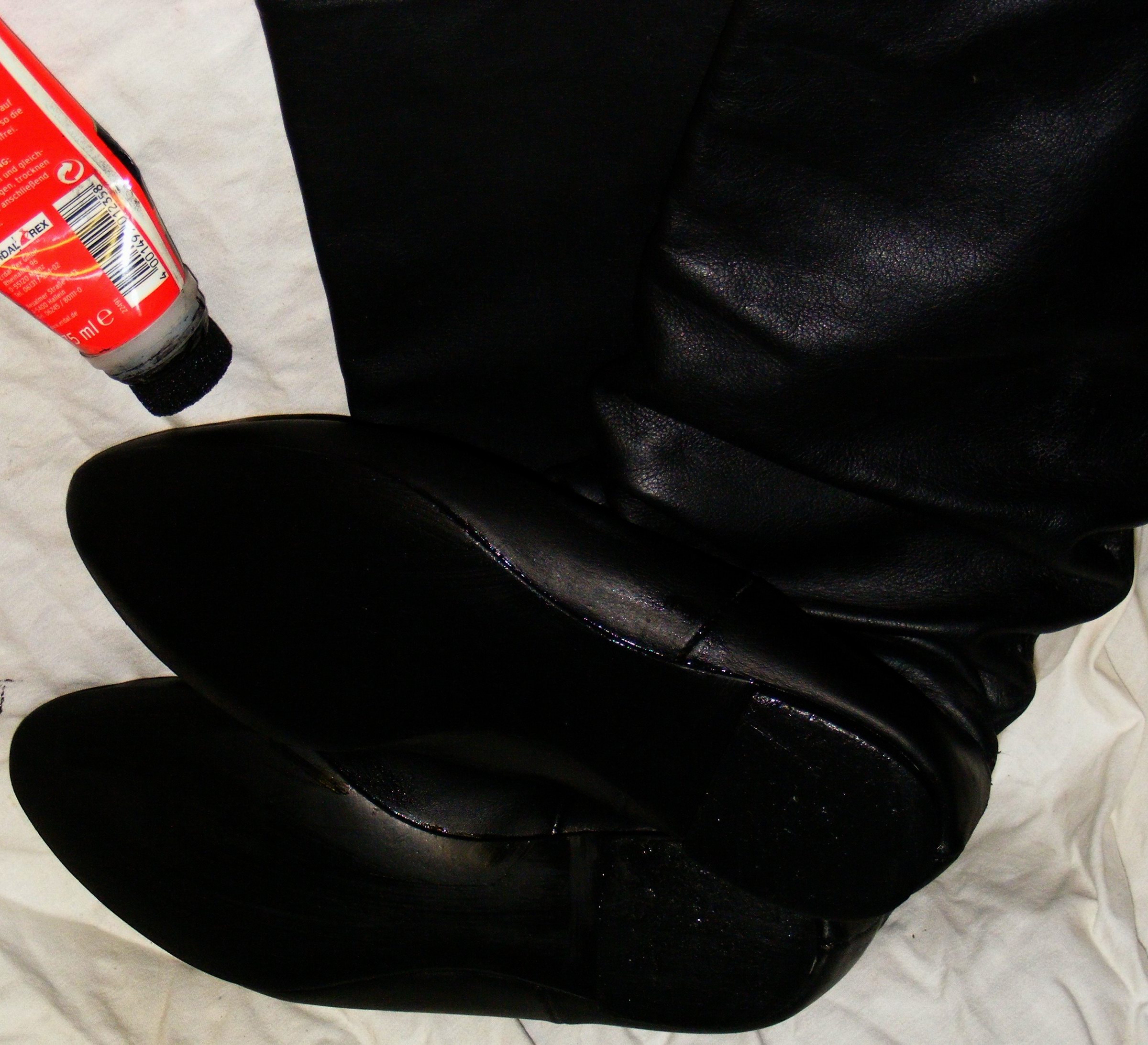 Was empfindet der/die Gummistiefelfeti beim Anblick seiner/ihrer falten- und charakterlosen Lieblinge, die getragen genauso aussehen, wie ungetragen? Da gibt´s nur sauber oder dreckig, ganz oder kaputt. Wo ist die künstlerische Einzigartigkeit, der bei Lederschuhen verewigten Fuß- und Zehenform des Trägers/der Trägerin?