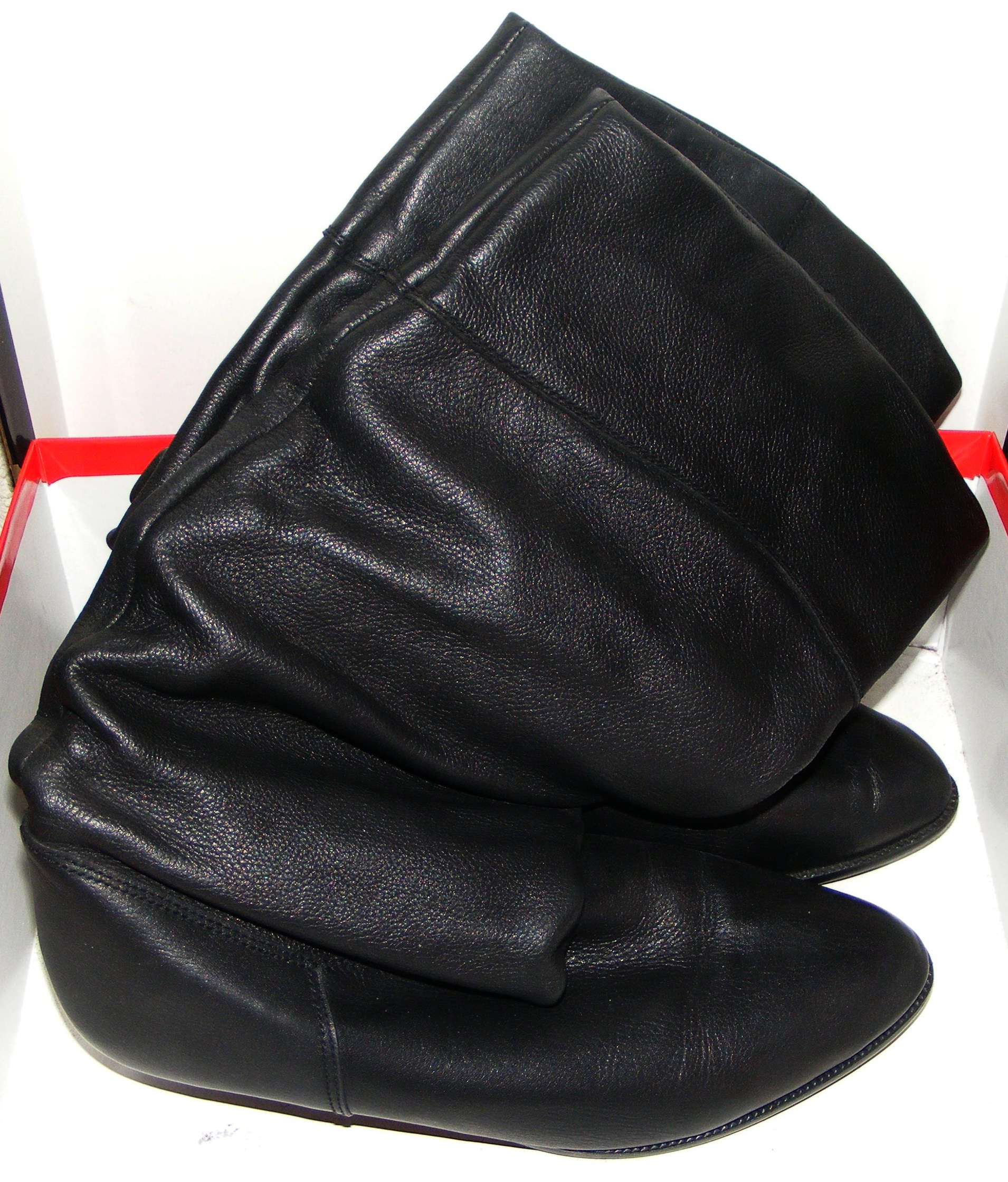 Diese Stiefel kann man wunderbar als faltige Stiefeletten Tragen, die Schäfte lassen sich Dank des weichen Stofffutters bis zum Knöchel Zusammenraffen und bleiben auch so Unten beim Laufen! :P