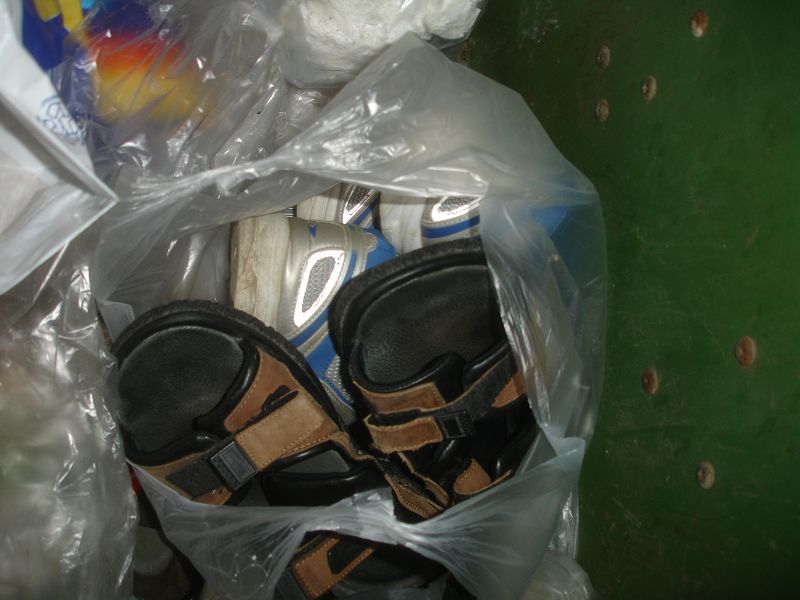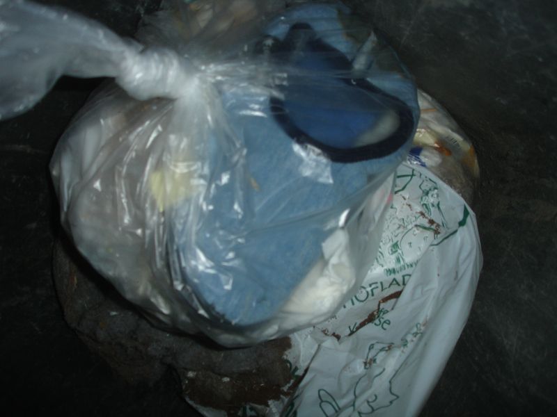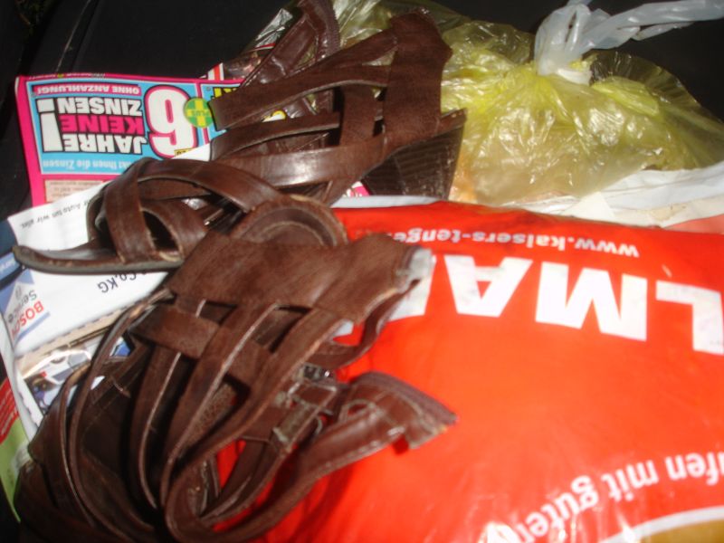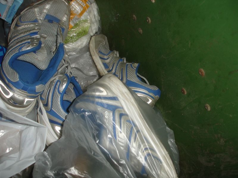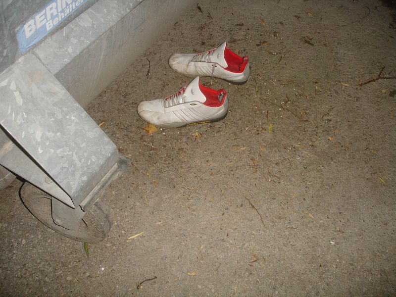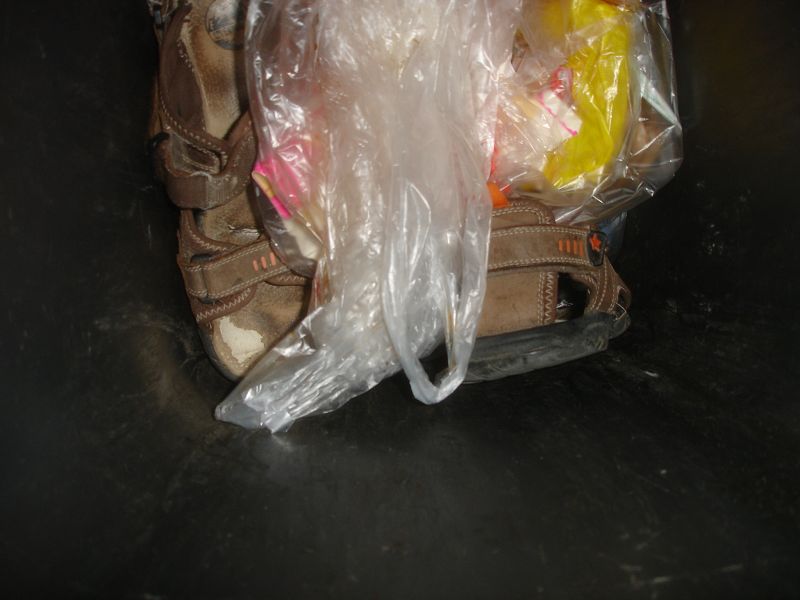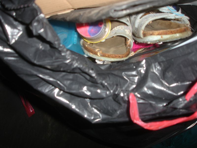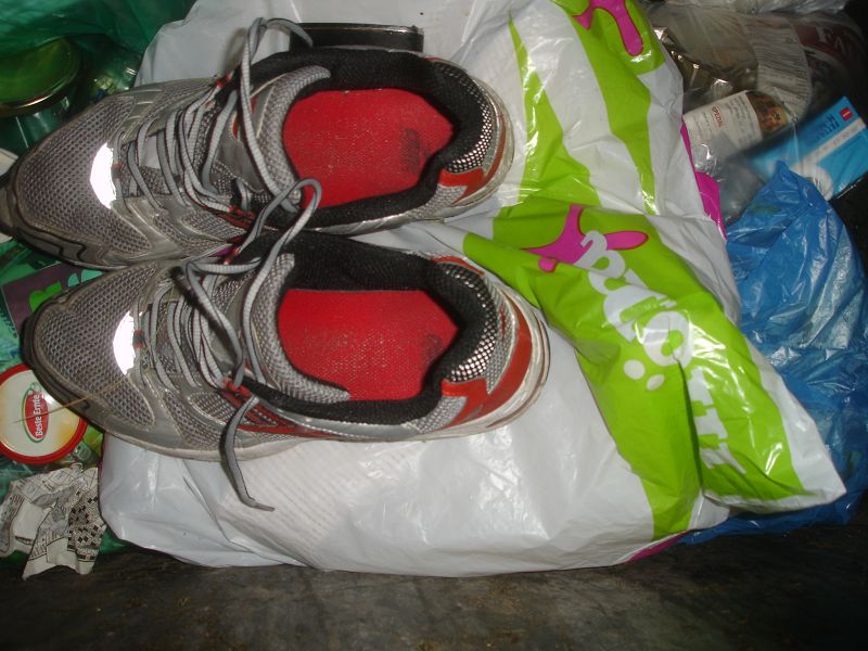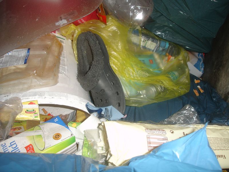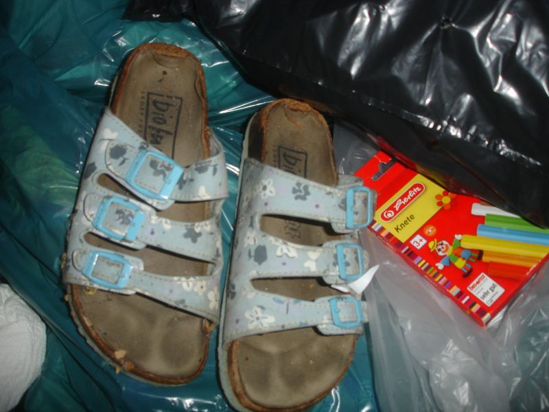 Anderer Ort, andere Tonne, ein Blick und zack gleich ein Erfolg. Ein ganzer Beutel voll mit Schuhen. Das Herz rast und der Jäger hat wieder was erbeutet *gg*