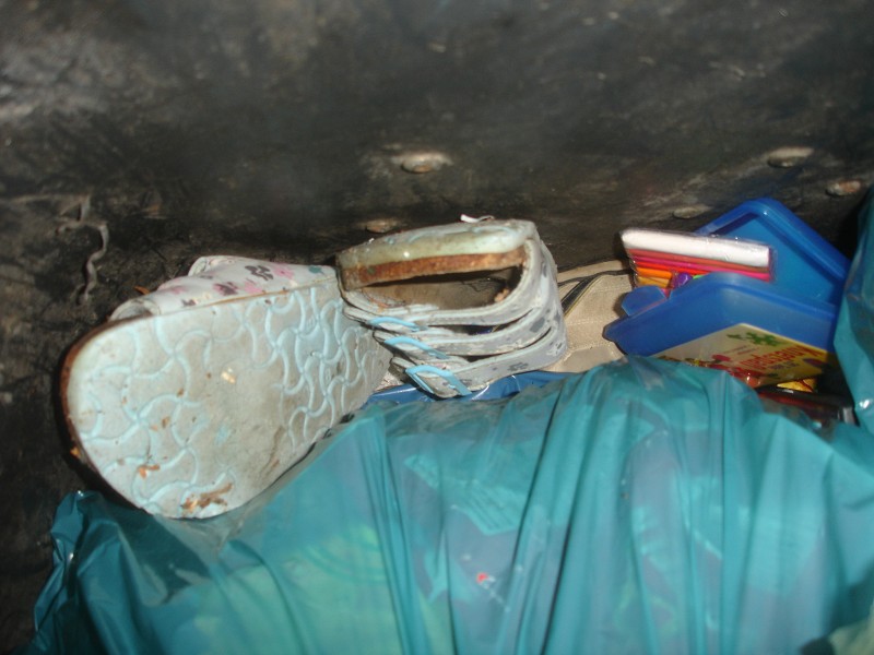 eine weitere Tasche mit reingestopften Stoffstücken, aber leider keinen Schuhen :(