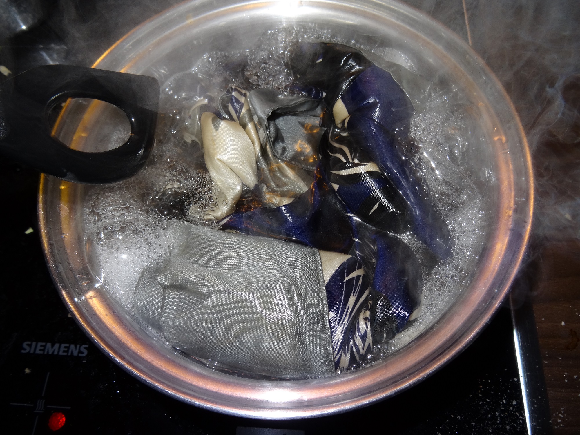 Hallo, da das mit dem mit kochendem Wasser übergießen nichts gebracht hat, hab ichs heute mal im Kochtopf versucht, ne schon Seidentopfsuppe zubereitet.