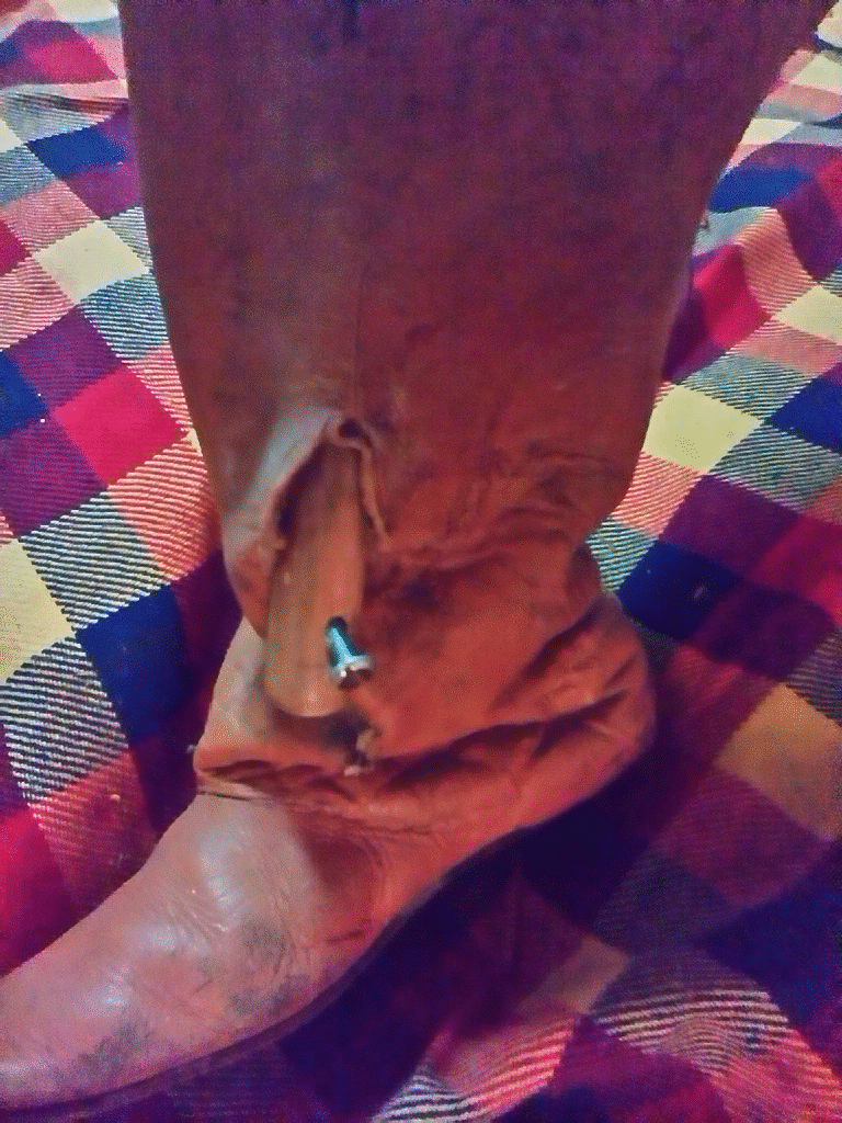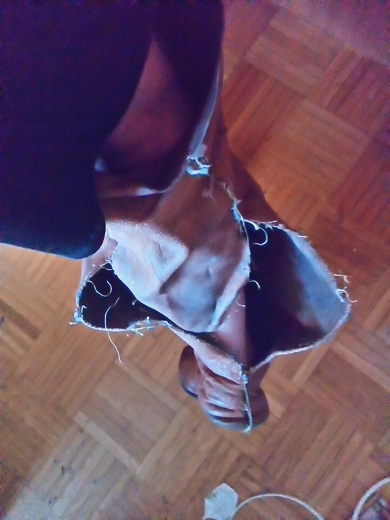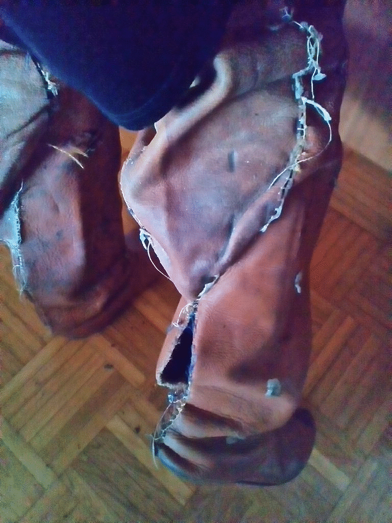 Der Stiefel ist nun bis Kniehoch aufgerissen..