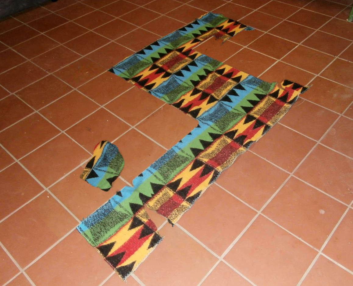 Uns ist es ein Rätsel, wie man eine Wolldecke so kurz und klein gerissen bekommt. Hundespieldecke?
