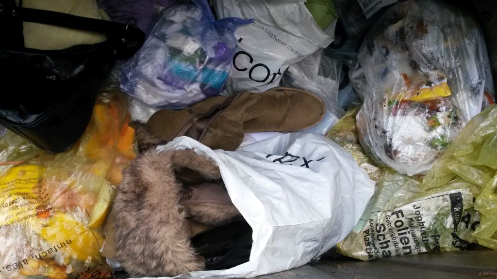 Muss mal sehen, was sich jetzt schon wieder in der Tonne angefunden hat. Habe vorhin eine Jeans in einem vollen Küchenmüllbeutel erspäht.